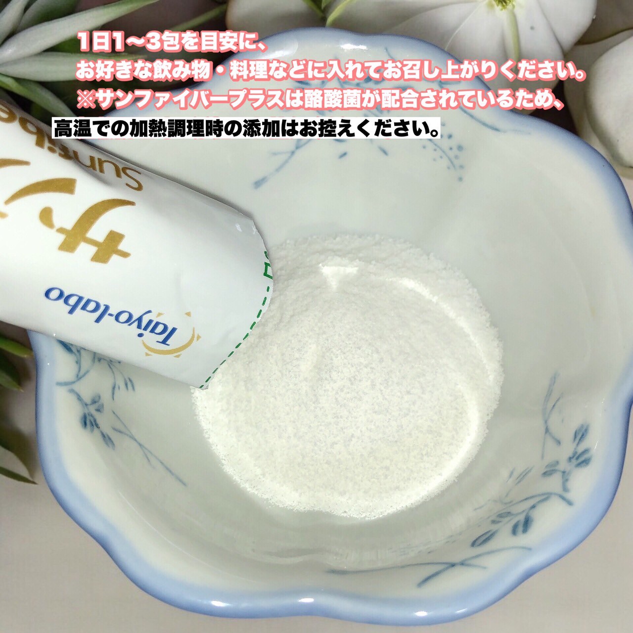 サンファイバープラス/タイヨーラボからだにやさしい食物繊維で体内環境をサポート✨️サッと溶けて食べ物や飲み物の味をかえないのにびっくりしました🫢1番変化が分かりやすいお水で試してみましたが味が変わらなくてすごい✨️個包装になっていてポーチに入...