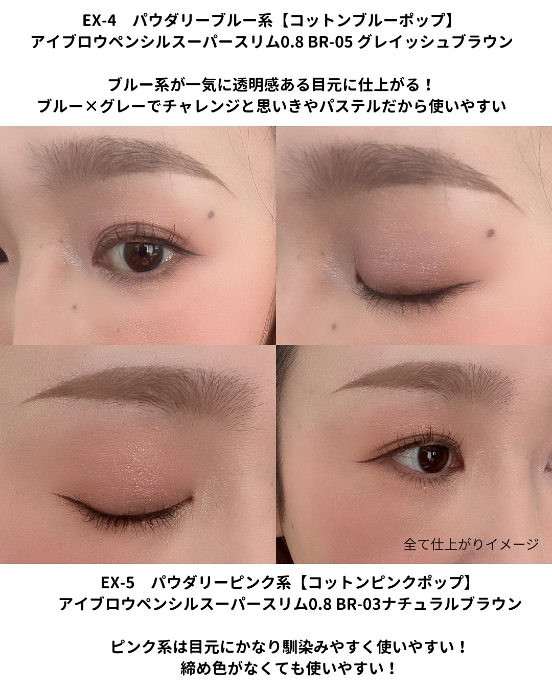 メロウブラウンアイズ全8色 パレット左3色の「透けブラウンカラー」が軽やかなのに立体感のある目もと印象に🫶🏻 スーパーシャープライナーEX4.0限定2色 どっちも可愛すぎる🥹💞 メインがブラックだから、メイクに合わせて使えるよ💕 楕円芯が描きやすい!ふんわり眉理想的な眉毛に🫶🏻