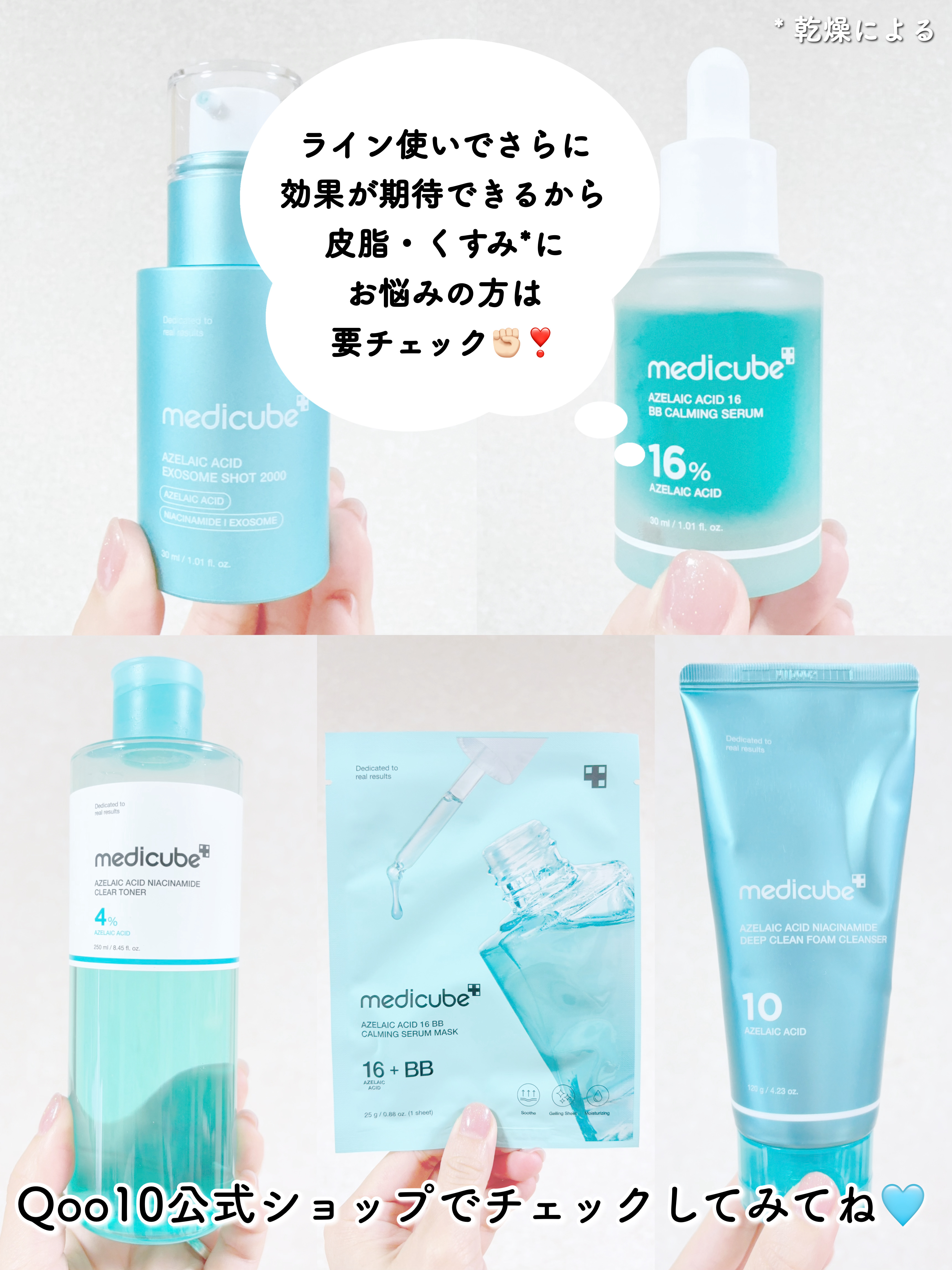 medicubeに待望の新ライン🩵#アゼライン酸脂性肌でニキビが出来やすい人*はもちろん夏のベタつきにぴったりなラインだと思う🌻#アゼライン酸ナイアシンアミドクリアトナー250ml2,300円(税込)👉🏻バシャバシャと全身に使える!ベタつきが...
