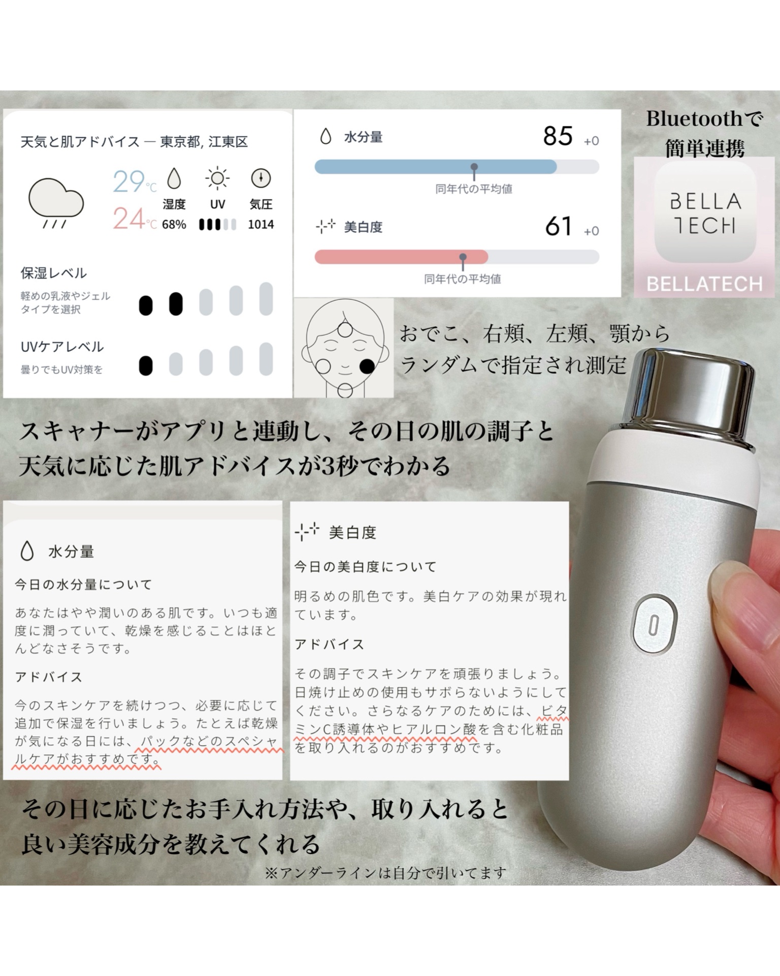 AI×データで私だけのスキンケアを。BELLATECHAIスキンスキャナー体験数々のスキンケアを今まで使ってきましたが、自分に合っているか合っていないか分からずに使っているのが正直なところ…🥲そんな時に出会ったのがBELLATECH✨AIとス...