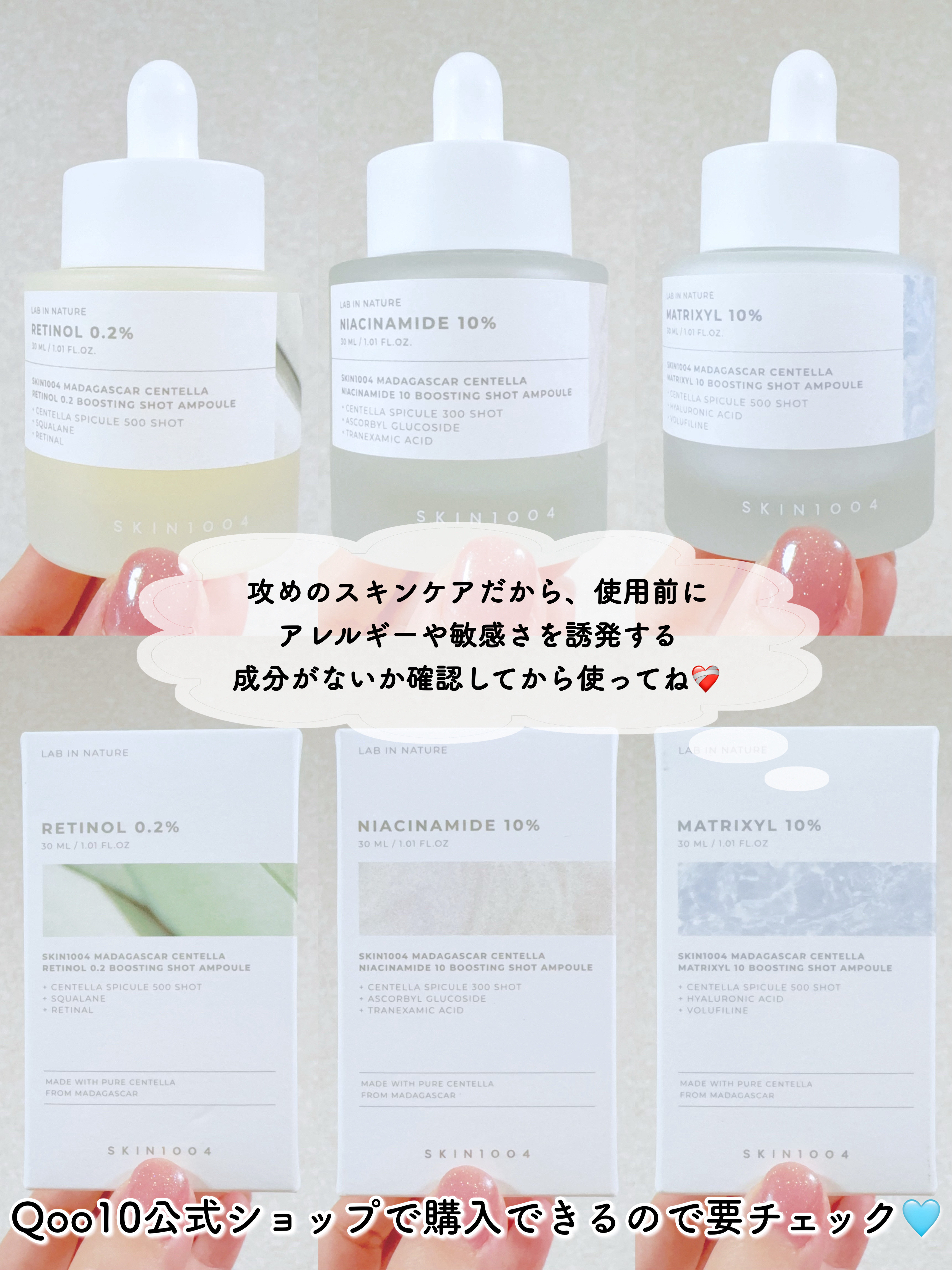 ✨SKIN1004から「攻めのスキンケア」登場✨センテラアンプルで有名なSKIN1004が、肌悩みに的確にアプローチできる【ブースティングショットアンプル】を展開中💡気になる肌悩みに合わせて選べる3種👇💛レチノール0.2ブースティングショット...