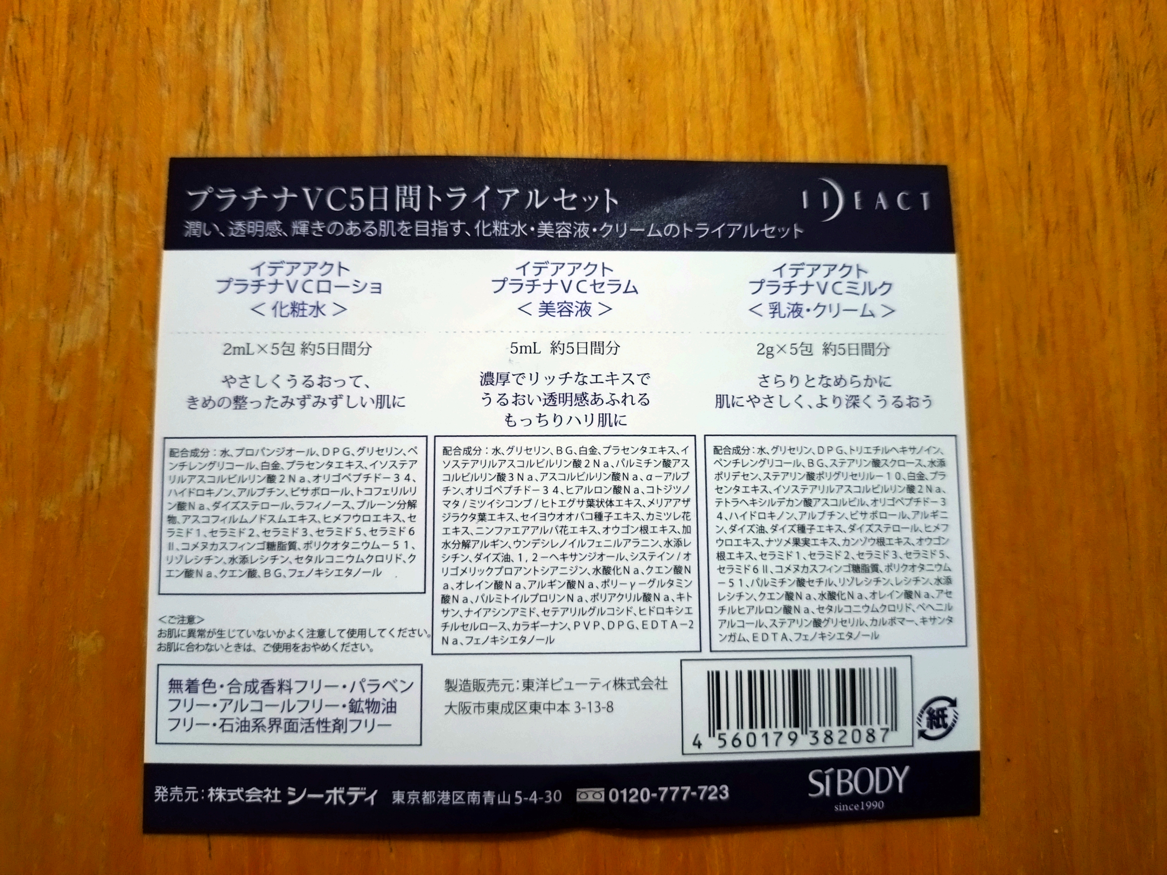 商品詳細情報イデアアクト プラチナVC5日間トライアルセット