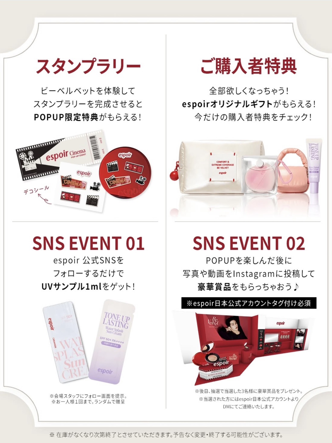 @cosmeTOKYOPOP-UPEVENT『𝐞𝐬𝐩𝐨𝐢𝐫𝐜𝐢𝐧𝐞𝐦𝐚』🎬🍿9月30日(火)まで@cosmeTOKYOにてespoirの大人気アイテム#ビーベルベットカバークッションの魅力を体験できるポップアップイベントを開催❤️それを記念し...