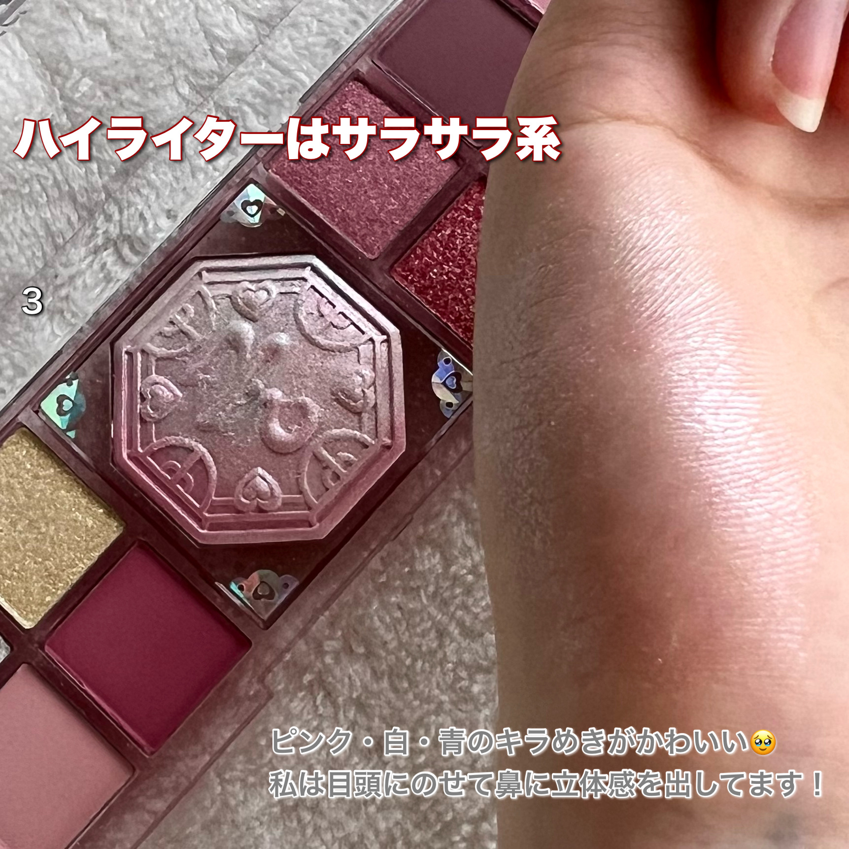 | アイシャドウパレットランキング第61位 | 高発色、高密着で大きめのグリッターだけど時間が経ってもグリッターが飛び散っていない♡ | 詳細を見る |