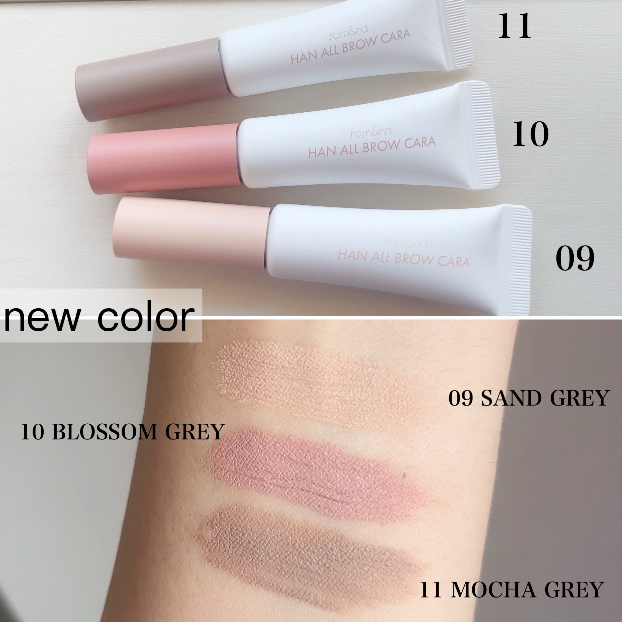 .大好きなロムアンドさんからハンオールブロウカラのモカグレーを商品提供いただきました🤎🍂自分で購入したブロッサムグレーとマイルドウッディも一緒にレビューします🫶🏻ブロッサムグレーとモカグレーは、柔らかいアッシュカラーが特徴の新作で、この絶妙な...