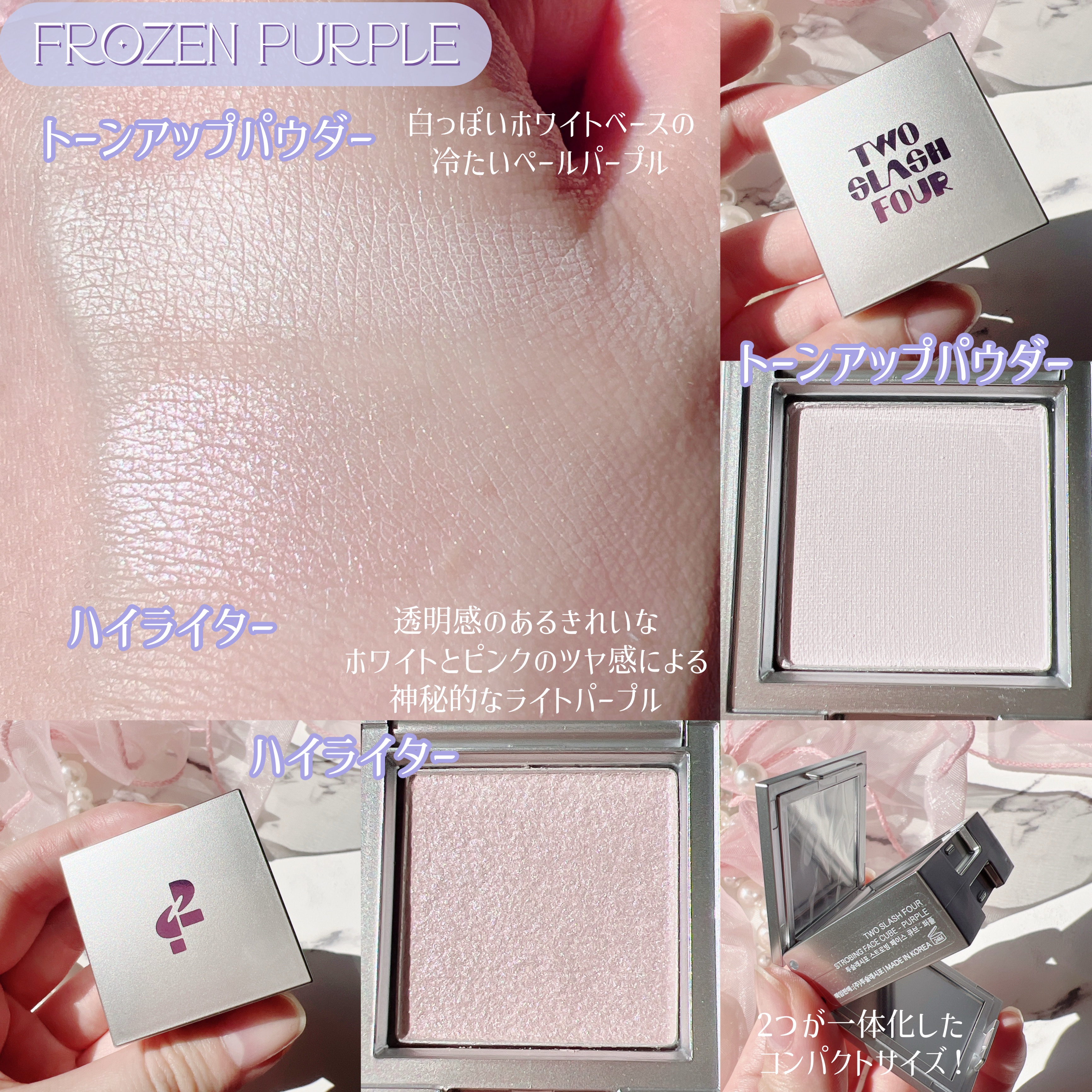 \フェイスもボディも華やかに✨/トーンアップパウダー&ハイライターがひとつに♡手のひらサイズのキューブ型コスメ!TWOSLASHFOURbyRISABAE▶︎ストロビングフェイスキューブホワイト/ピーチ/パープル#ホワイトキューブ🧊透明なホワ...