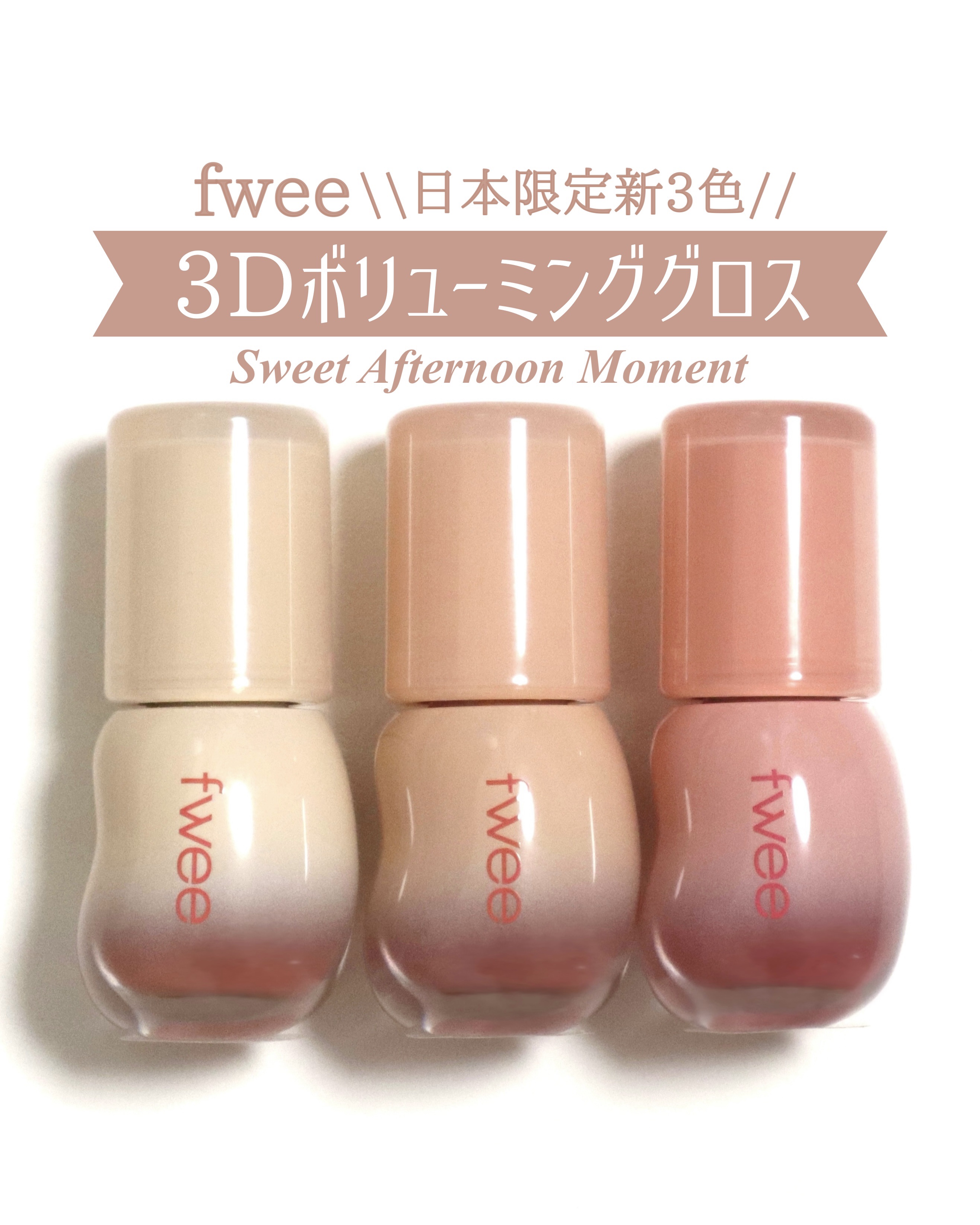 fwee3Dボリューミンググロス全12色紹介!【商品について】話題のリップグロス!もっちりテクスチャーでぷっくり唇を演出&ツヤ長持ち◎保湿感もあります!淡い発色の30%、発色も楽しめる70%から選べます。コロンとしたパッケージも可愛い...