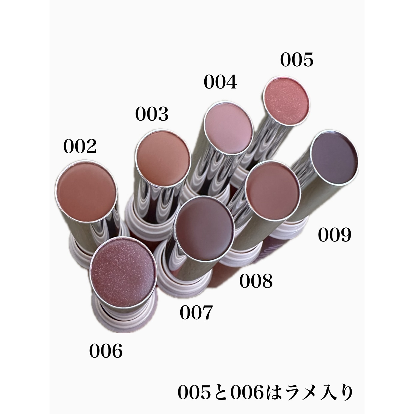 - <001 ミー デイ> リンゴ酸ジイソステアリル、ポリブテン、ダイマージリノール酸ダイマージリノレイルビス(ベヘニル/イソステアリル/フィトステリル)、トリイソステアリン酸ポリグリセリル-2、ビスジグリセリルポリアシルアジペート-2、エチルヘキサン酸セチル、パラフィン、(イソステアリン酸ポリグリセリル-2/ダイマージリノール酸)コポリマー、マイクロクリスタリンワックス、トリポリヒドロキシステアリン酸ジペンタエリスリチル、イソステアリン酸ソルビタン、合成ワックス、ジポリヒドロキシステアリン酸ポリグリセリル-2、ポリヒドロキシステアリン酸、乳酸メンチル、レシチン、ツバキ種子油、ヒマワリ種子油、アーモンド油、マカデミア種子油、ヒマシ油、パルミチン酸エチルヘキシル、ミリスチン酸イソプロピル、カプリリルグリコール、カプリル酸グリセリル、エチルヘキシルグリセリン、イソステアリン酸、ジイソステアリン酸ポリグリセリル-2、ポリリシノレイン酸ポリグリセリル-3、ポリエチレン、トコフェロール [+/-] 酸化チタン、酸化鉄、赤202、赤223、赤226、赤227、青1 <002 セレンディピティ> リンゴ酸ジイソステアリル、ポリブテン、ダイマージリノール酸ダイマージリノレイルビス(ベヘニル/イソステアリル/フィトステリル)、トリイソステアリン酸ポリグリセリル-2、ビスジグリセリルポリアシルアジペート-2、エチルヘキサン酸セチル、パラフィン、(イソステアリン酸ポリグリセリル-2/ダイマージリノール酸)コポリマー、トリポリヒドロキシステアリン酸ジペンタエリスリチル、マイクロクリスタリンワックス、イソステアリン酸ソルビタン、合成ワックス、ジポリヒドロキシステアリン酸ポリグリセリル-2、ポリヒドロキシステアリン酸、乳酸メンチル、レシチン、ツバキ種子油、ヒマワリ種子油、アーモンド油、マカデミア種子油、ヒマシ油、パルミチン酸エチルヘキシル、ミリスチン酸イソプロピル、カプリリルグリコール、カプリル酸グリセリル、エチルヘキシルグリセリン、イソステアリン酸、ポリリシノレイン酸ポリグリセリル-3、トコフェロール [+/-] 酸化チタン、酸化鉄、赤223、赤227、青1 <003 サン ゴッデス> リンゴ酸ジイソステアリル、ポリブテン、ダイマージリノール酸ダイマージリノレイルビス(ベヘニル/イソステアリル/フィトステリル)、トリイソステアリン酸ポリグリセリル-2、ビスジグリセリルポリアシルアジペート-2、エチルヘキサン酸セチル、パラフィン、(イソステアリン酸ポリグリセリル-2/ダイマージリノール酸)コポリマー、トリポリヒドロキシステアリン酸ジペンタエリスリチル、マイクロクリスタリンワックス、イソステアリン酸ソルビタン、合成ワックス、ジポリヒドロキシステアリン酸ポリグリセリル-2、ポリヒドロキシステアリン酸、乳酸メンチル、レシチン、ツバキ種子油、ヒマワリ種子油、アーモンド油、マカデミア種子油、ヒマシ油、オクチルドデカノール、パルミチン酸エチルヘキシル、ミリスチン酸イソプロピル、カプリリルグリコール、カプリル酸グリセリル、エチルヘキシルグリセリン、水酸化Al、水酸化Mg、ステアリン酸、オレイン酸ソルビタン、イソステアリン酸、ポリリシノレイン酸ポリグリセリル-3、トコフェロール [+/-] 酸化チタン、酸化鉄、赤104(1)、赤202、赤223、青1、黄4 <004 スペル オブ ラブ> リンゴ酸ジイソステアリル、ポリブテン、ダイマージリノール酸ダイマージリノレイルビス(ベヘニル/イソステアリル/フィトステリル)、トリイソステアリン酸ポリグリセリル-2、ビスジグリセリルポリアシルアジペート-2、エチルヘキサン酸セチル、パラフィン、(イソステアリン酸ポリグリセリル-2/ダイマージリノール酸)コポリマー、トリポリヒドロキシステアリン酸ジペンタエリスリチル、マイクロクリスタリンワックス、イソステアリン酸ソルビタン、合成ワックス、ジポリヒドロキシステアリン酸ポリグリセリル-2、ポリヒドロキシステアリン酸、乳酸メンチル、レシチン、ツバキ種子油、ヒマワリ種子油、アーモンド油、マカデミア種子油、ヒマシ油、パルミチン酸エチルヘキシル、ミリスチン酸イソプロピル、カプリリルグリコール、カプリル酸グリセリル、エチルヘキシルグリセリン、イソステアリン酸、ポリリシノレイン酸ポリグリセリル-3、ジイソステアリン酸ポリグリセリル-2、トコフェロール [+/-] 酸化チタン、酸化鉄、赤202、赤223、青1、黄4、黄5 <005 ヘヴン> リンゴ酸ジイソステアリル、ポリブテン、ダイマージリノール酸ダイマージリノレイルビス(ベヘニル/イソステアリル/フィトステリル)、トリイソステアリン酸ポリグリセリル-2、ビスジグリセリルポリアシルアジペート-2、エチルヘキサン酸セチル、パラフィン、(イソステアリン酸ポリグリセリル-2/ダイマージリノール酸)コポリマー、トリポリヒドロキシステアリン酸ジペンタエリスリチル、マイクロクリスタリンワックス、イソステアリン酸ソルビタン、合成ワッ