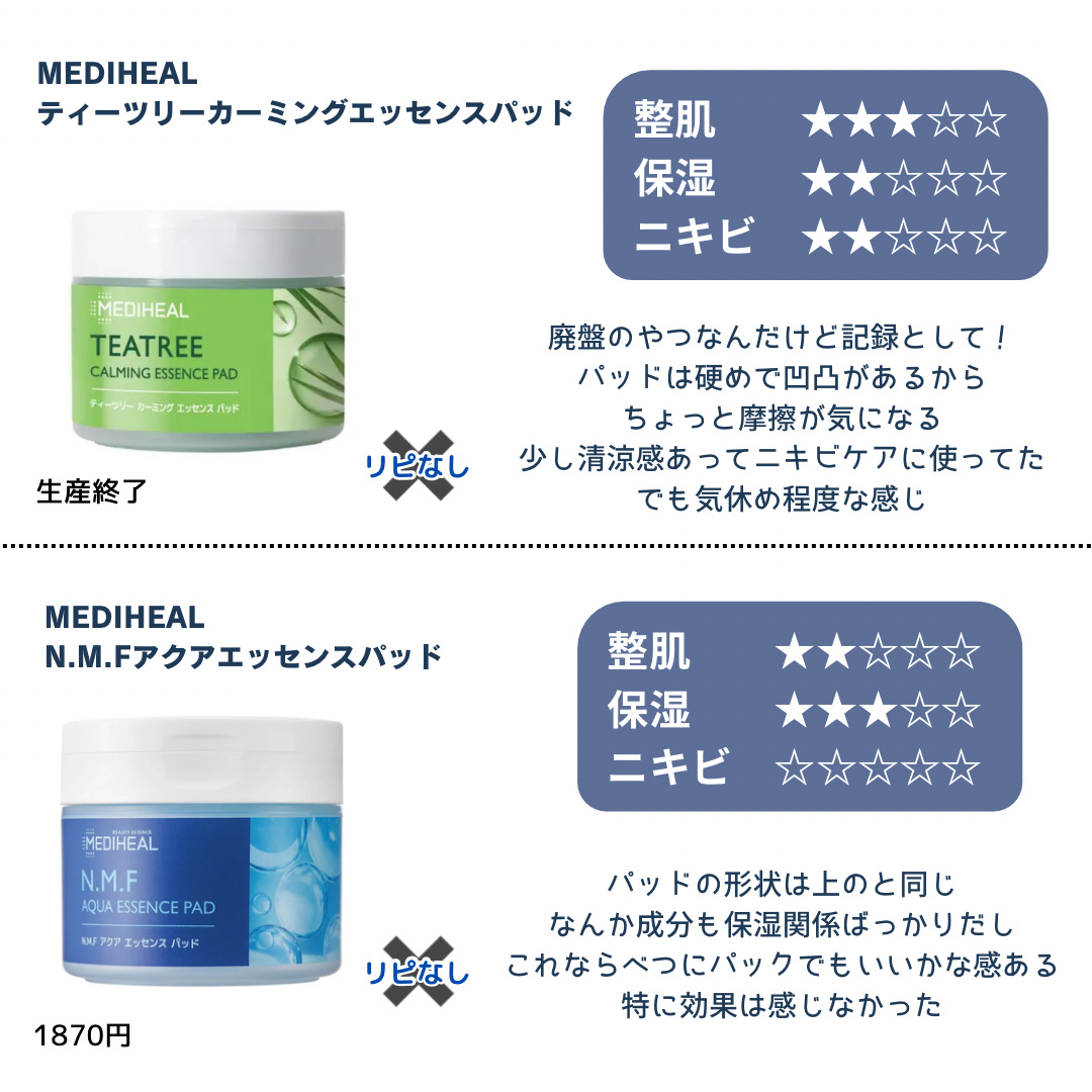 マルチに使える💖 メディヒールの独占成分✨ ティーツリーカーミングバイオーム‼️ 優しい使い心地で使いやすすぎる💟 拭き取りケアは2枚重ねて使用するのもおすすめ💕 毎日使えるトナパがあるのはとってもありがたいです🌟 このパッドは旦那も気に入っていて、ベタベタしないし、サッパリだから男の人でも使いやすいと思います🧡