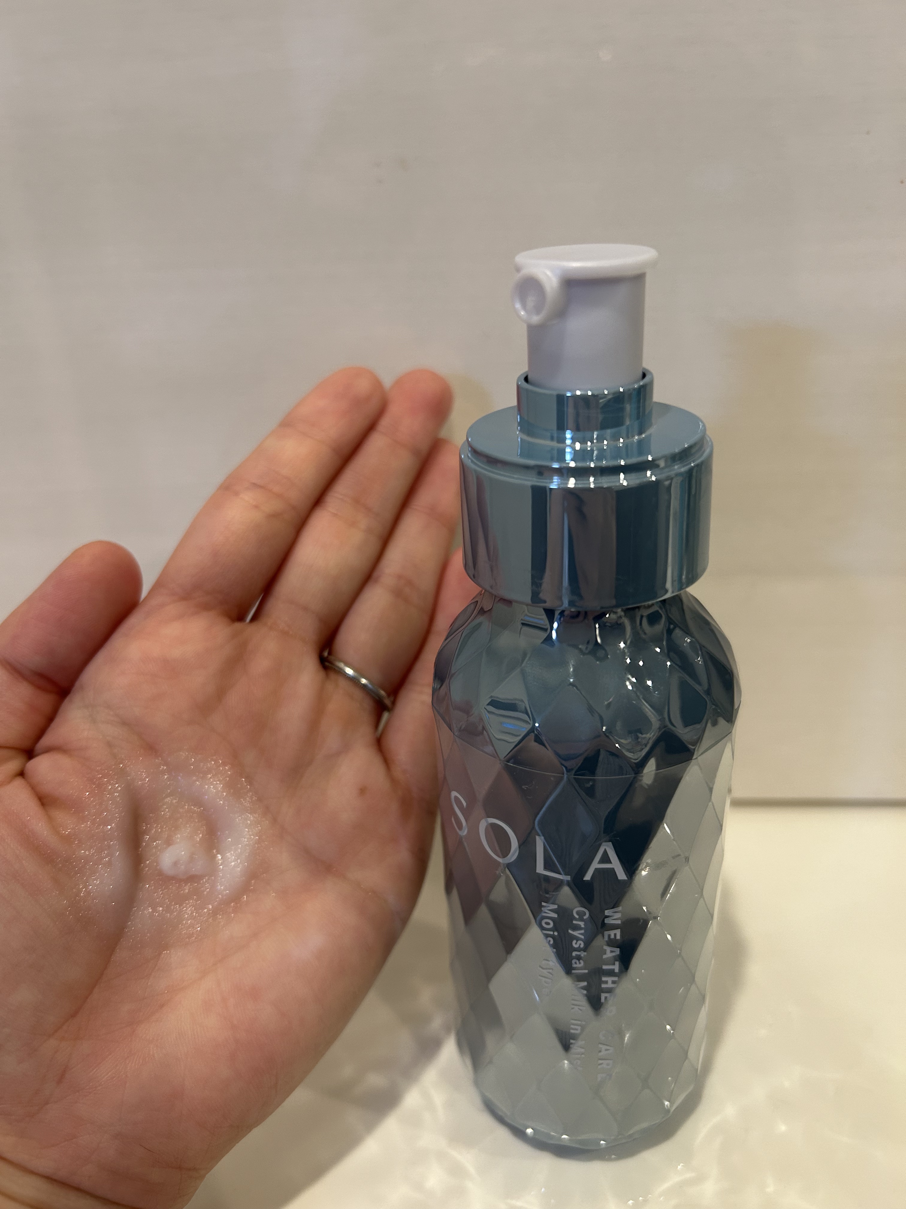 SOLAWEATHERCARE(ソラ ウェザーケア) クリスタル ヘアミルクinミスト モイストタイプソラウェザーケアのシャンプー&トリートメントと一緒に使用しています。どんな天気の日でも、輝く晴れツヤ髪へ導くウェザーケアブランド。このヘアミ...