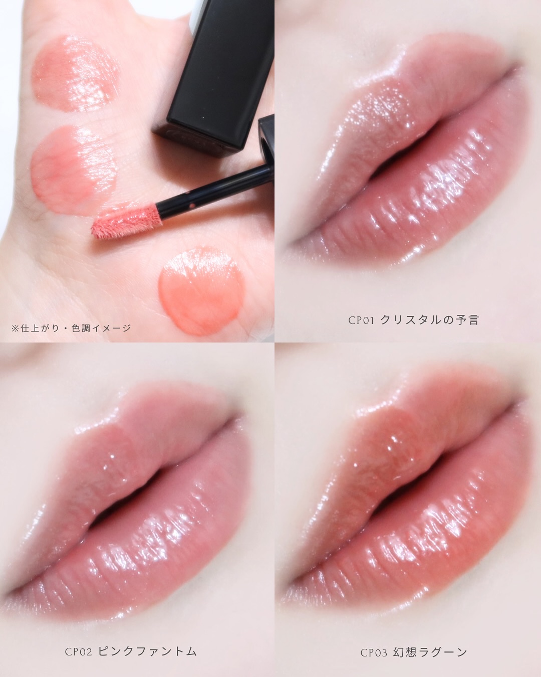 - <CP01 クリスタルの予言> テトライソステアリン酸ジペンタエリスリチル、デカイソステアリン酸ポリグリセリル-10、オクチルドデカノール、リンゴ酸ジイソステアリル、ラウロイルグルタミン酸ジ(フィトステリル/オクチルドデシル)、ビスアルキル(C16-18)グリセリルウンデシルジメチコン、トリ(カプリル酸/カプリン酸)グリセリル、水添ポリイソブテン、ラウロイルグルタミン酸ジ(オクチルドデシル/フィトステリル/ベヘニル)、パラフィン、ダイマージリノール酸(フィトステリル/イソステアリル/セチル/ステアリル/ベヘニル)、合成ワックス、ホホバ種子油、マイクロクリスタリンワックス、ジステアルジモニウムヘクトライト、水添マイクロクリスタリンワックス、炭酸プロピレン、トコフェロール、パルミチン酸デキストリン、オリーブ果実油、アーモンド油、(エチレン/プロピレン)コポリマー、ポリエチレン、ヒドロキシステアリン酸エチルヘキシル、ヒアルロン酸Na、フェノキシエタノール、(+/-)セルロース、マイカ、ラウロイルアスパラギン酸Na、ラウロイルリシン、塩化亜鉛、酸化チタン、酸化鉄、水酸化Al、硫酸Ba、トリイソステアリン酸イソプロピルチタン、トリエトキシカプリリルシラン、黄4、黄5、青1、赤201、赤202 <CP02 ピンクファントム> テトライソステアリン酸ジペンタエリスリチル、デカイソステアリン酸ポリグリセリル-10、オクチルドデカノール、リンゴ酸ジイソステアリル、ラウロイルグルタミン酸ジ(フィトステリル/オクチルドデシル)、ビスアルキル(C16-18)グリセリルウンデシルジメチコン、トリ(カプリル酸/カプリン酸)グリセリル、水添ポリイソブテン、ラウロイルグルタミン酸ジ(オクチルドデシル/フィトステリル/ベヘニル)、パラフィン、ダイマージリノール酸(フィトステリル/イソステアリル/セチル/ステアリル/ベヘニル)、合成ワックス、ホホバ種子油、マイクロクリスタリンワックス、ジステアルジモニウムヘクトライト、水添マイクロクリスタリンワックス、炭酸プロピレン、トコフェロール、パルミチン酸デキストリン、オリーブ果実油、アーモンド油、(エチレン/プロピレン)コポリマー、ポリエチレン、ヒドロキシステアリン酸エチルヘキシル、ヒアルロン酸Na、フェノキシエタノール、(+/-)セルロース、マイカ、ラウロイルアスパラギン酸Na、ラウロイルリシン、塩化亜鉛、酸化チタン、酸化鉄、水酸化Al、硫酸Ba、トリイソステアリン酸イソプロピルチタン、トリエトキシカプリリルシラン、黄4、黄5、青1、赤201、赤202 <CP03 幻想ラグーン> テトライソステアリン酸ジペンタエリスリチル、デカイソステアリン酸ポリグリセリル-10、オクチルドデカノール、リンゴ酸ジイソステアリル、ラウロイルグルタミン酸ジ(フィトステリル/オクチルドデシル)、ビスアルキル(C16-18)グリセリルウンデシルジメチコン、トリ(カプリル酸/カプリン酸)グリセリル、水添ポリイソブテン、ラウロイルグルタミン酸ジ(オクチルドデシル/フィトステリル/ベヘニル)、パラフィン、ダイマージリノール酸(フィトステリル/イソステアリル/セチル/ステアリル/ベヘニル)、合成ワックス、ホホバ種子油、マイクロクリスタリンワックス、ジステアルジモニウムヘクトライト、水添マイクロクリスタリンワックス、炭酸プロピレン、トコフェロール、パルミチン酸デキストリン、オリーブ果実油、アーモンド油、(エチレン/プロピレン)コポリマー、ポリエチレン、ヒドロキシステアリン酸エチルヘキシル、ヒアルロン酸Na、フェノキシエタノール、(+/-)セルロース、マイカ、ラウロイルアスパラギン酸Na、ラウロイルリシン、塩化亜鉛、酸化チタン、酸化鉄、水酸化Al、硫酸Ba、トリイソステアリン酸イソプロピルチタン、トリエトキシカプリリルシラン、黄4、黄5、青1、赤201、赤202