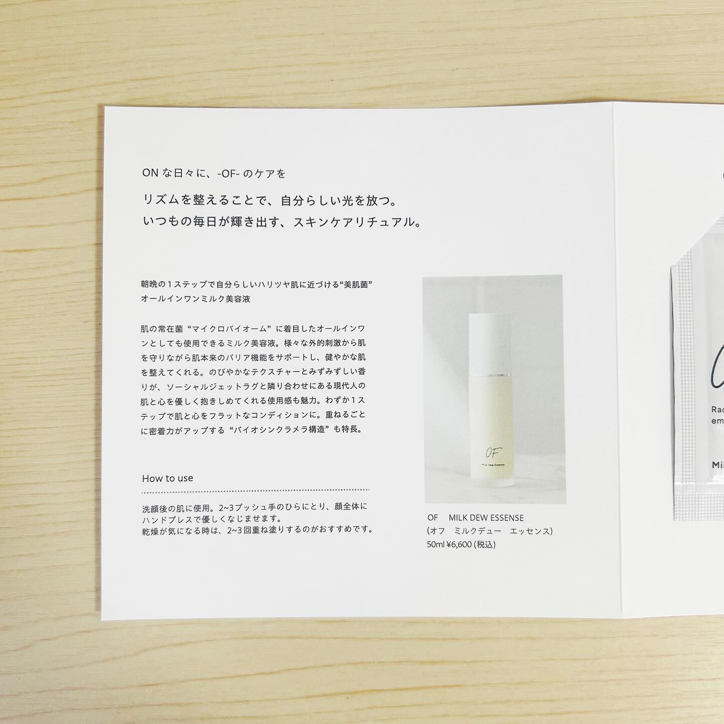 OFさまからいただきましたOF MILKDEWESSENSE (オフ ミルクデュー エッセンス)をお試しさせていただきました。使いやすいポンプ式の美容液。しっとりとしたクリームのようなテクスチャー。なめらかに伸びて、肌になじんでくれます。優し...