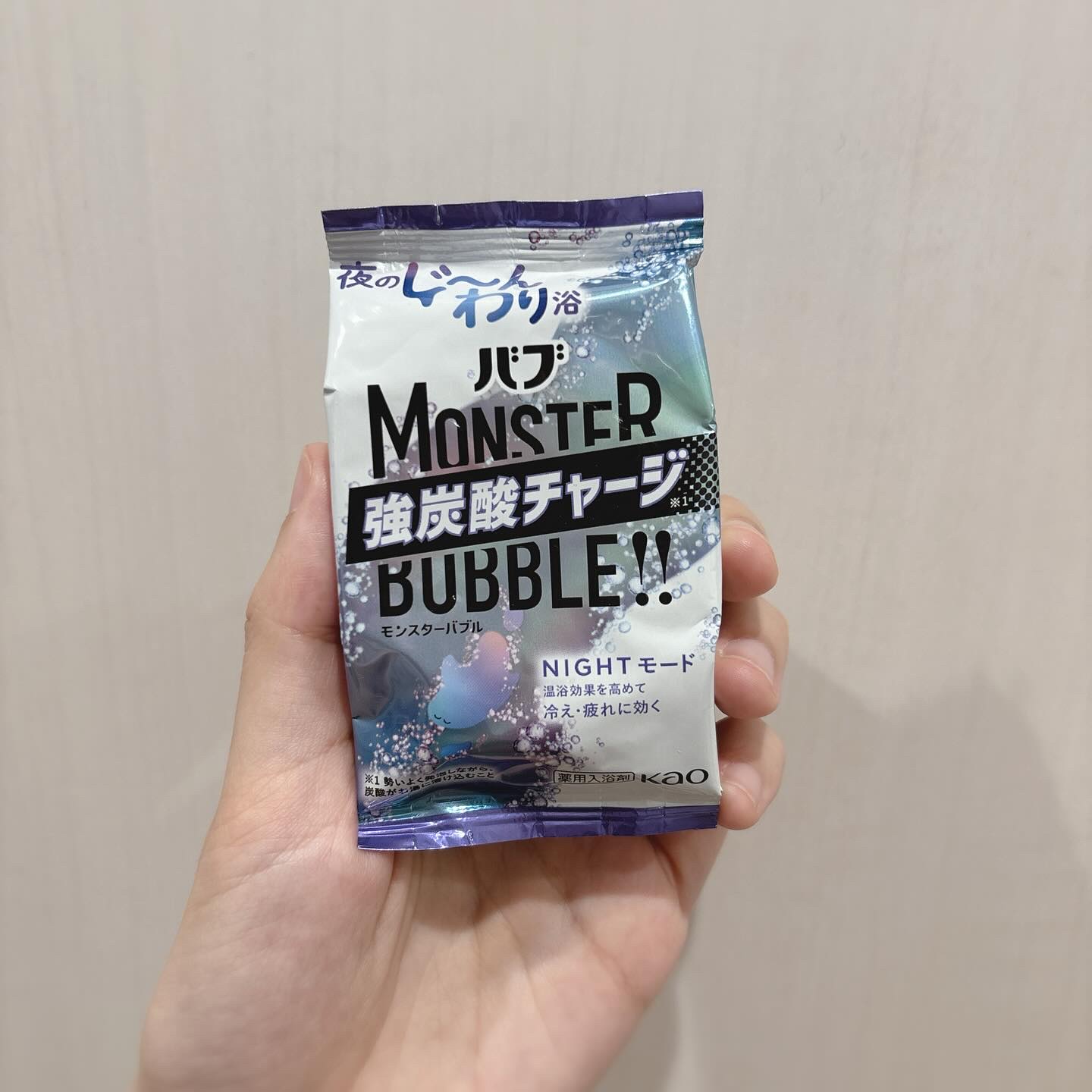 バブモンスターバブルNIGHTモード✨花王さまからいただきました。「夜のじ~んわり浴」がテーマの入浴剤で、おやすみ前のお風呂にぴったりなアイテム!温浴効果を高めて、冷え・疲れにアプローチしてくれるそう💡BIGタブレットを湯船に入れると、強炭酸...