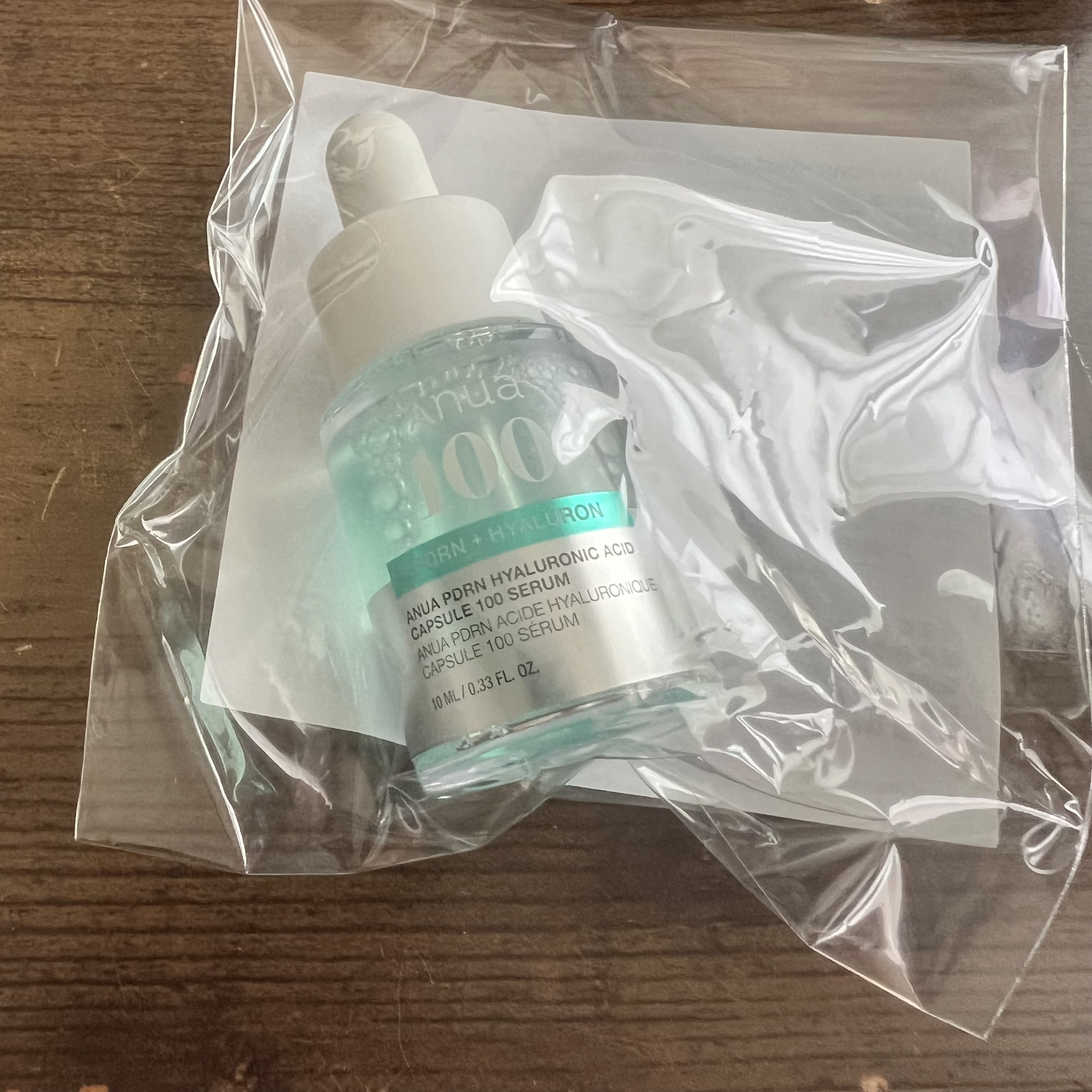 PDRNが気になって何がいいかな~と迷って、一番最初に選んだのがanuaでした✨ アヌアのドクダミトナーやビタミンcセラムの使用感が好きだったから、というのもある。 テクスチャーはさらっさらで肌なじみがいい✨ べたつきも一切残らないし、ツヤっと潤うっていうのが売りなのにテカリが気にならない。 なじむまでが早いからすぐに次のステップに移れるのも好き。 時間置かなくてもなじんでくれるから、時間のない朝に助かります(笑)