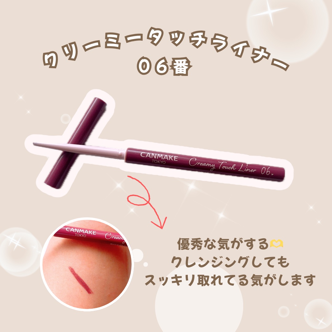 ▪︎キャンメイクCANMAKEクリーミータッチライナー03ダークブラウン﹏﹏﹏﹏﹏﹏﹏﹏﹏﹏﹏﹏﹏芯がやわらかくて、スルスル描けるジェルアイライナー✍️細めの芯で、まつげの隙間も埋めやすいです。ラインはぼかしやすく、ナチュラルに仕上げたい時に...