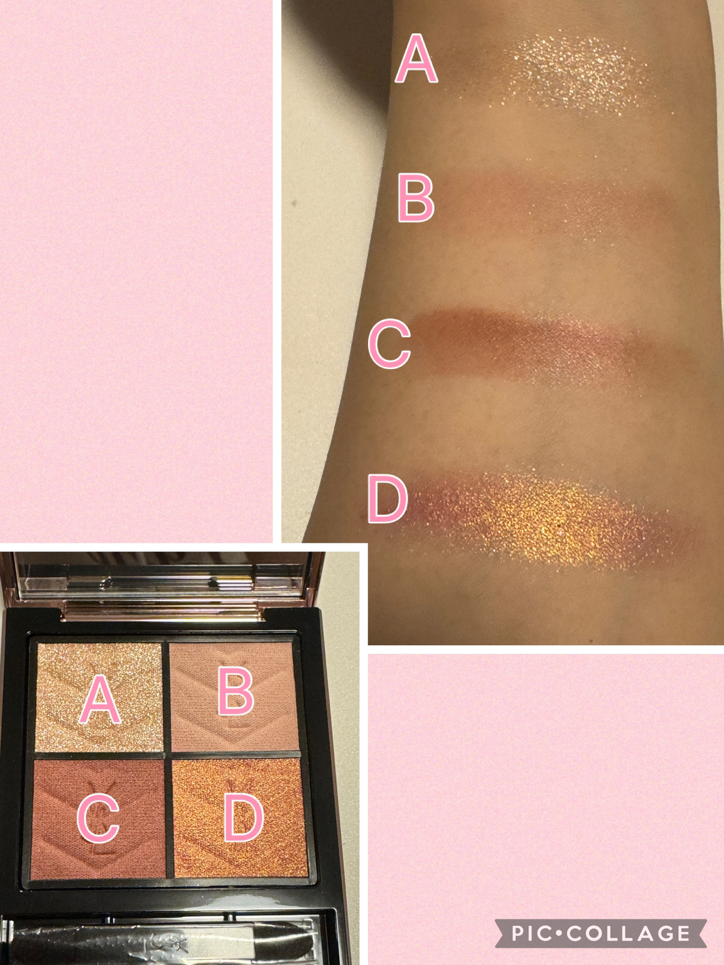 YSLのクチュールミニクラッチの限定!!ピンクのマーブル模様が可愛い!!普通のピンクパレットではなくて右下ゴールドの偏光ラメがポイントになるかんじ発色は全体的に淡め★825バーニングデザイアやわらかさに情熱を宿すスパークルピンク上段の肌にとけ...