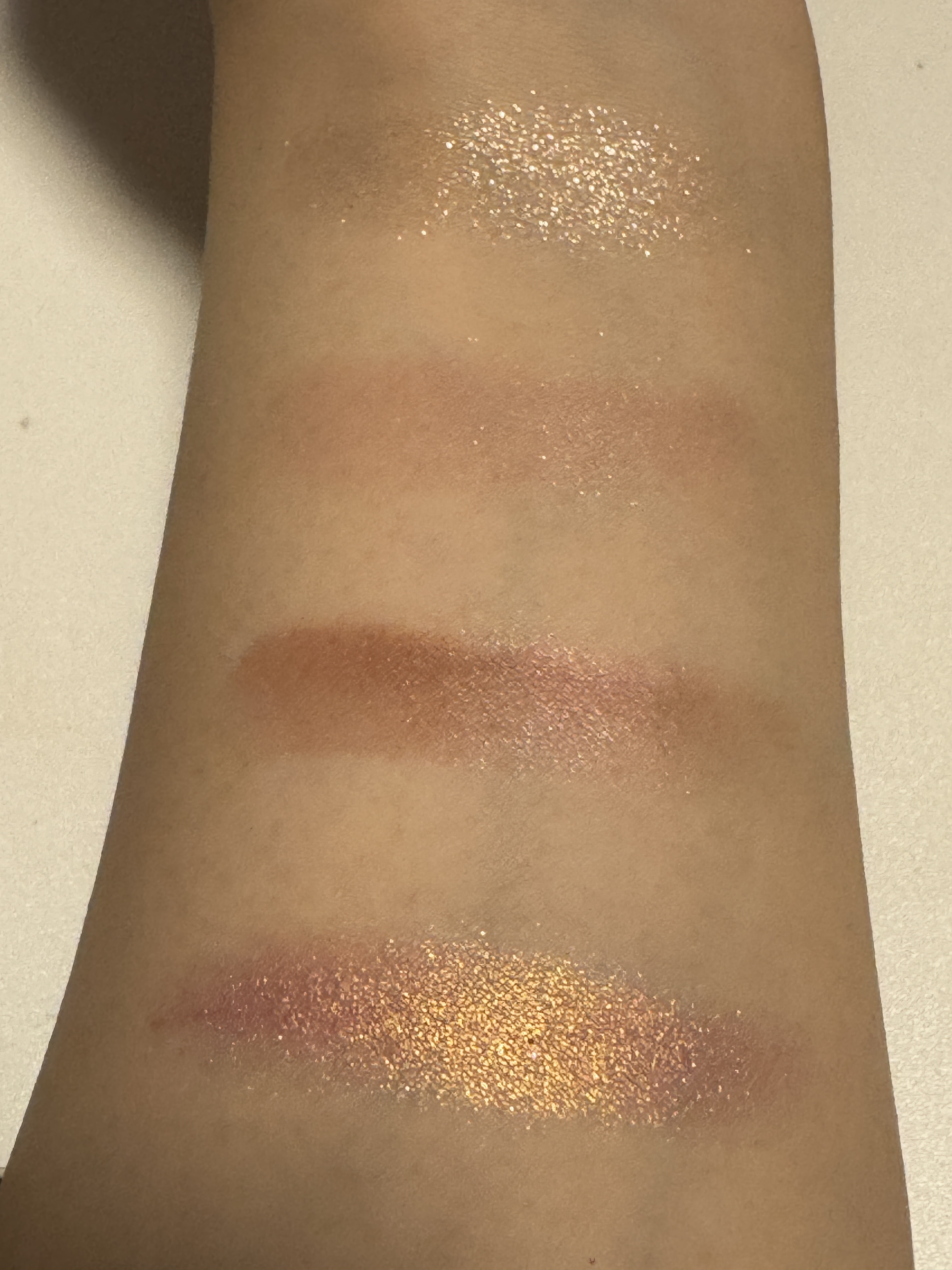 スタークロスドは全体的にくすみ系のピンクパープル系で大人っぽい印象に仕上がるアイシャドウパレットです✨️ 特に左下のセレスティアルの青ラメが堪らない🥰 ただラメやパールがめちゃくちゃキラキラです‼️