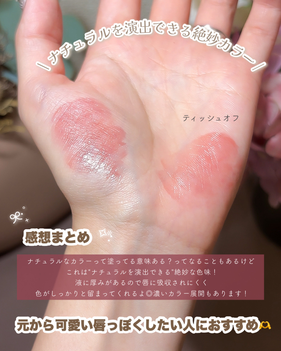 | ベタつかない軽いテクスチャーで、 体温でなめらかに溶けてツヤツヤでぷっくりとした唇に✨ | 詳細を見る | ||