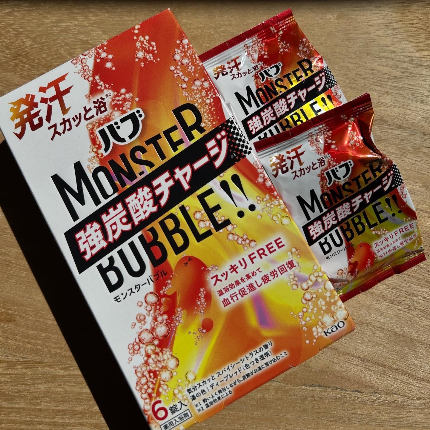 バブモンスターバブル スッキリFREE花王さまからいただきました✨モンスター級に沸き立つ炭酸泡がお湯に溶け込んだら温浴効果UP!全身を包んで血の巡りを促進し、じゅわっとあたためてくれるとのこと✨ココロとカラダが求めるもので思いっきり満たされま...
