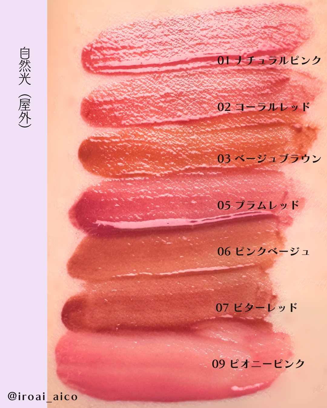 - <01 ナチュラルピンク> 水、ダイマージリノール酸(フィトステリル/イソステアリル/セチル/ステアリル/ベヘニル)、ダイマージリノール酸ダイマージリノレイル、ジフェニルシロキシフェニルトリメチコン、オクチルドデカノール、ラウロイルグルタミン酸ジ(フィトステリル/オクチルドデシル)、水添ポリイソブテン、BG、ジフェニルジメチコン、セテス-10、グリセリン、エタノール、セチルPEG/PPG-10/1ジメチコン、(アクリル酸ヒドロキシエチル/アクリロイルジメチルタウリンNa)コポリマー、イソヘキサデカン、フェノキシエタノール、メチルパラベン、トコフェロール、ポリソルベート60、エチルパラベン、デヒドロ酢酸Na、リン酸2Na、リン酸Na、イソステアリン酸ソルビタン、シメチコン、スクワラン、ハチミツ、ステアリン酸ソルビタン、ステアリン酸グリセリル、ローヤルゼリーエキス、オレイン酸ポリグリセリル-10、セルロースガム、ヒアルロン酸Na、ローズマリー葉エキス、カミツレ花エキス、水溶性コラーゲン、クエン酸、クエン酸Na、(+/-)ジカプリン酸ネオペンチルグリコール、トリイソステアリン酸ポリグリセリル-2、酸化チタン、マイカ、赤227、黄4、青1、水酸化Al、ポリアスパラギン酸Na、シリカ、キサンタンガム、EDTA-2Na、酸化鉄、PVP <02 コーラルレッド> 水、ダイマージリノール酸(フィトステリル/イソステアリル/セチル/ステアリル/ベヘニル)、ダイマージリノール酸ダイマージリノレイル、ジフェニルシロキシフェニルトリメチコン、オクチルドデカノール、ラウロイルグルタミン酸ジ(フィトステリル/オクチルドデシル)、水添ポリイソブテン、BG、ジフェニルジメチコン、セテス-10、グリセリン、エタノール、セチルPEG/PPG-10/1ジメチコン、(アクリル酸ヒドロキシエチル/アクリロイルジメチルタウリンNa)コポリマー、イソヘキサデカン、フェノキシエタノール、メチルパラベン、トコフェロール、ポリソルベート60、エチルパラベン、デヒドロ酢酸Na、リン酸2Na、リン酸Na、イソステアリン酸ソルビタン、シメチコン、スクワラン、ハチミツ、ステアリン酸ソルビタン、ステアリン酸グリセリル、ローヤルゼリーエキス、オレイン酸ポリグリセリル-10、セルロースガム、ヒアルロン酸Na、ローズマリー葉エキス、カミツレ花エキス、水溶性コラーゲン、クエン酸、クエン酸Na、(+/-)ジカプリン酸ネオペンチルグリコール、トリイソステアリン酸ポリグリセリル-2、酸化チタン、マイカ、赤227、黄4、青1、水酸化Al、ポリアスパラギン酸Na、シリカ、キサンタンガム、EDTA-2Na、酸化鉄、PVP <03 ベージュブラウン> 水、ダイマージリノール酸(フィトステリル/イソステアリル/セチル/ステアリル/ベヘニル)、ダイマージリノール酸ダイマージリノレイル、ジフェニルシロキシフェニルトリメチコン、オクチルドデカノール、ラウロイルグルタミン酸ジ(フィトステリル/オクチルドデシル)、水添ポリイソブテン、BG、ジフェニルジメチコン、セテス-10、グリセリン、エタノール、セチルPEG/PPG-10/1ジメチコン、(アクリル酸ヒドロキシエチル/アクリロイルジメチルタウリンNa)コポリマー、イソヘキサデカン、フェノキシエタノール、メチルパラベン、トコフェロール、ポリソルベート60、エチルパラベン、デヒドロ酢酸Na、リン酸2Na、リン酸Na、イソステアリン酸ソルビタン、シメチコン、スクワラン、ハチミツ、ステアリン酸ソルビタン、ステアリン酸グリセリル、ローヤルゼリーエキス、オレイン酸ポリグリセリル-10、セルロースガム、ヒアルロン酸Na、ローズマリー葉エキス、カミツレ花エキス、水溶性コラーゲン、クエン酸、クエン酸Na、(+/-)ジカプリン酸ネオペンチルグリコール、トリイソステアリン酸ポリグリセリル-2、酸化チタン、マイカ、赤227、黄4、青1、水酸化Al、ポリアスパラギン酸Na、シリカ、キサンタンガム、EDTA-2Na、酸化鉄、PVP <05 プラムレッド> 水、ダイマージリノール酸(フィトステリル/イソステアリル/セチル/ステアリル/ベヘニル)、ダイマージリノール酸ダイマージリノレイル、ジフェニルシロキシフェニルトリメチコン、オクチルドデカノール、ラウロイルグルタミン酸ジ(フィトステリル/オクチルドデシル)、水添ポリイソブテン、BG、ジフェニルジメチコン、セテス-10、グリセリン、エタノール、セチルPEG/PPG-10/1ジメチコン、(アクリル酸ヒドロキシエチル/アクリロイルジメチルタウリンNa)コポリマー、イソヘキサデカン、フェノキシエタノール、メチルパラベン、トコフェロール、ポリソルベート60、エチルパラベン、デヒドロ酢酸Na、リン酸2Na、リン酸Na、イソステアリン酸ソルビタン、シメチコン、スクワラン、ハチミツ、ステアリン酸ソルビタン、ステアリン酸グリセリル、ローヤルゼリーエキス、オレイン酸ポリグリセリル-10、セルロースガム、ヒアルロン酸Na、ローズマリー葉エキス、カミツレ花エキス、水溶性コラーゲン、クエン酸、クエン酸Na、(+/-)ジカプリン酸ネオペンチルグリコール、トリイソステア