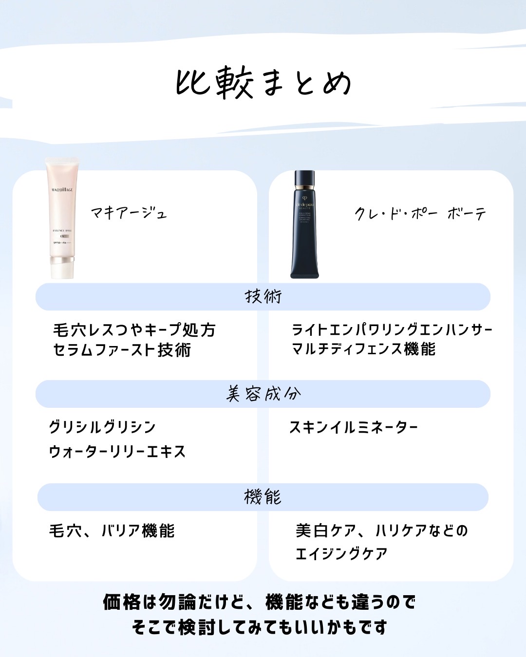 特定の有効成分を試してみたい。美容成分を試したい。そんな時は代用してもいいけど、それって似てるのかな?って思うときが正直ある。 同じ成分があっても実は濃度が違ったり、処方技術が違ったり。技術が違うと使用感も剤型も変わることがあることは知ったうえで使うといいかも。 せっかくプチプラ化粧品を買うならそれはそれで楽しんでほしいから是非念頭にいれてほしいな!!