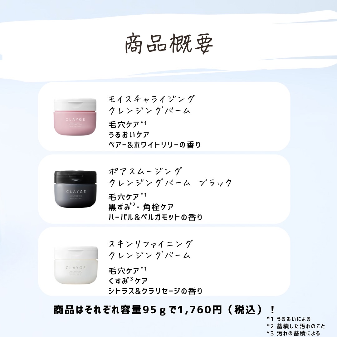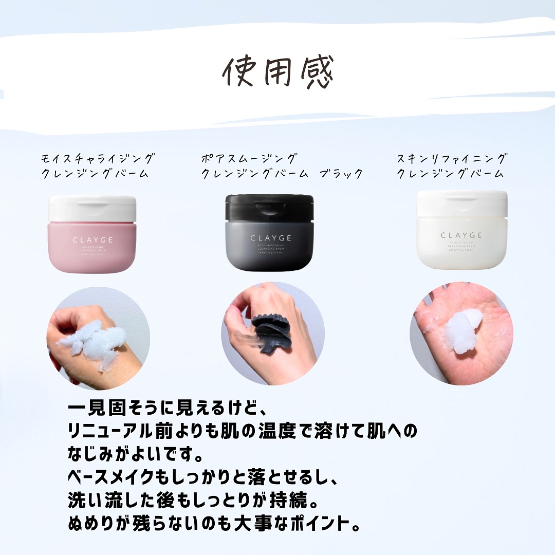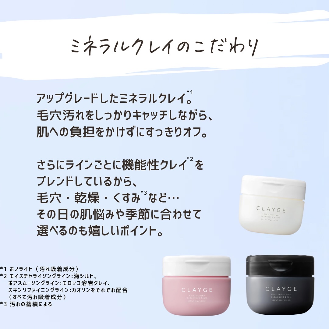 \リニューアル✨/CLAYGE・モイスチャライジングクレンジングバーム・ポアスムージングクレンジングバーム・スキンリファイニングクレンジングバーム容量:各95g価格:各1,760円(税込)「CLAYGE(クレージュ)」のクレンジングバームが2...