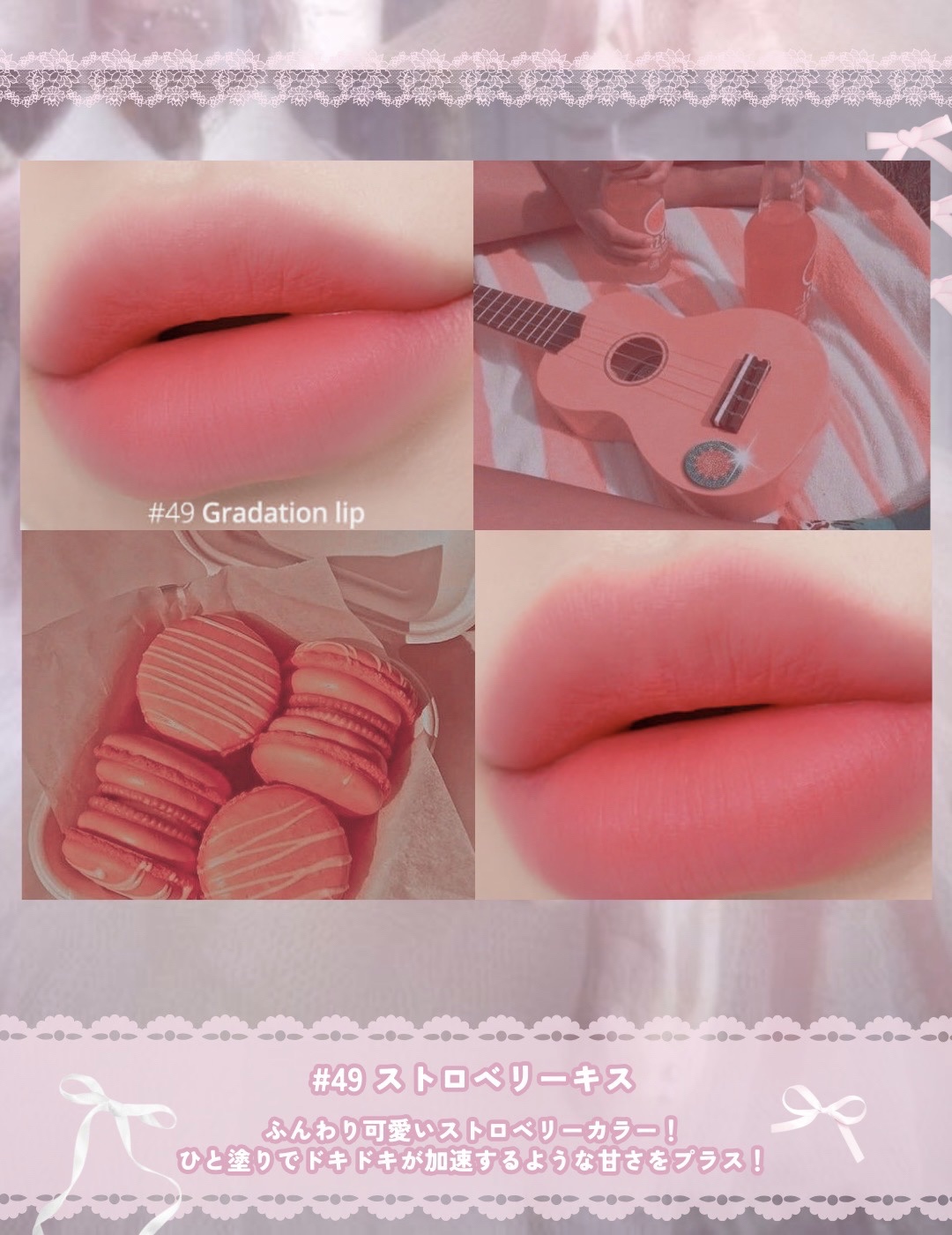 | 伸ばしやすくてグラデしやすい!まるでムースみたいなテクスチャーのリップ | 詳細を見る | ||