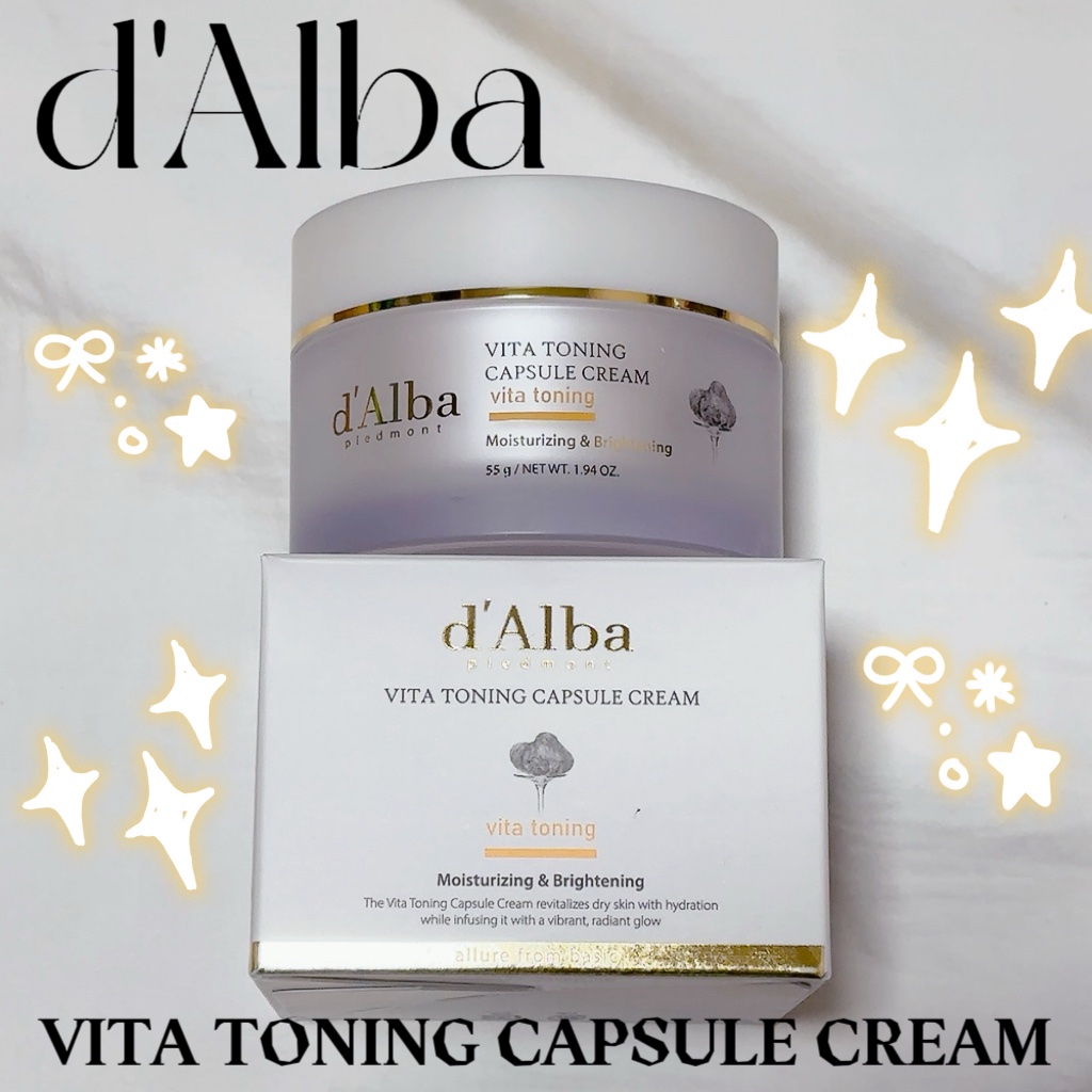 ビタトーニングカプセルクリーム頂きました💖ダルバのビタトーニングカプセルクリームは、ビタミンを含んだカプセルが肌に弾けるようになじみ、うるおいとツヤを与えてくれるクリームです✨しっとり感がありつつもべたつきにくく、肌のキメを整えて透明感のある...