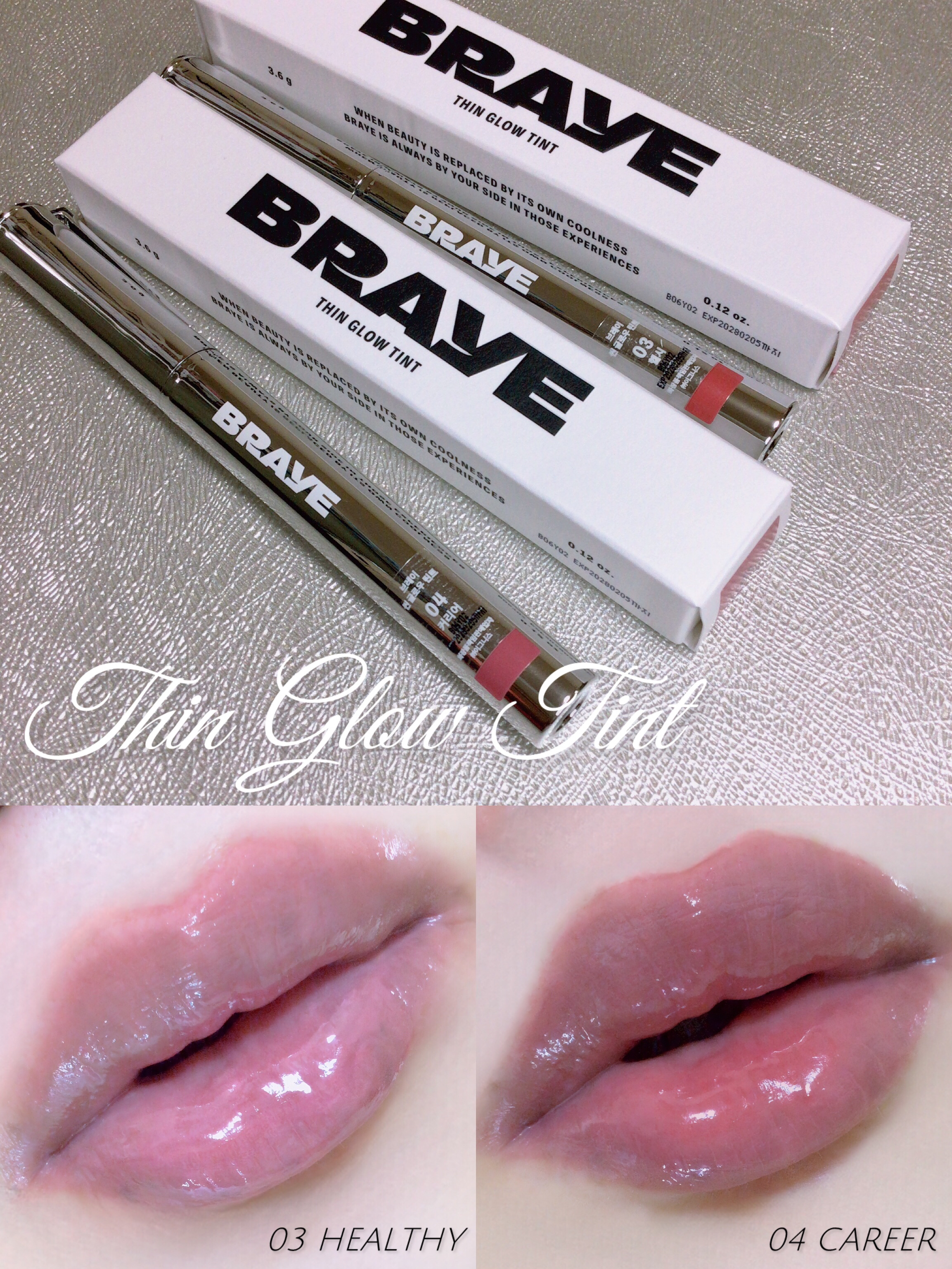 #こっくりカラーに夢中韓国コスメブランドBRAYE(ブレイ)THINGLOWTINT03ヘルシーHEALTHY04キャリアCAREER万年筆のような高級感のあるシルバーパッケージ✨塗りたては美しいツヤ発色が良くて色残りもバッチリ👌長時間塗りた...