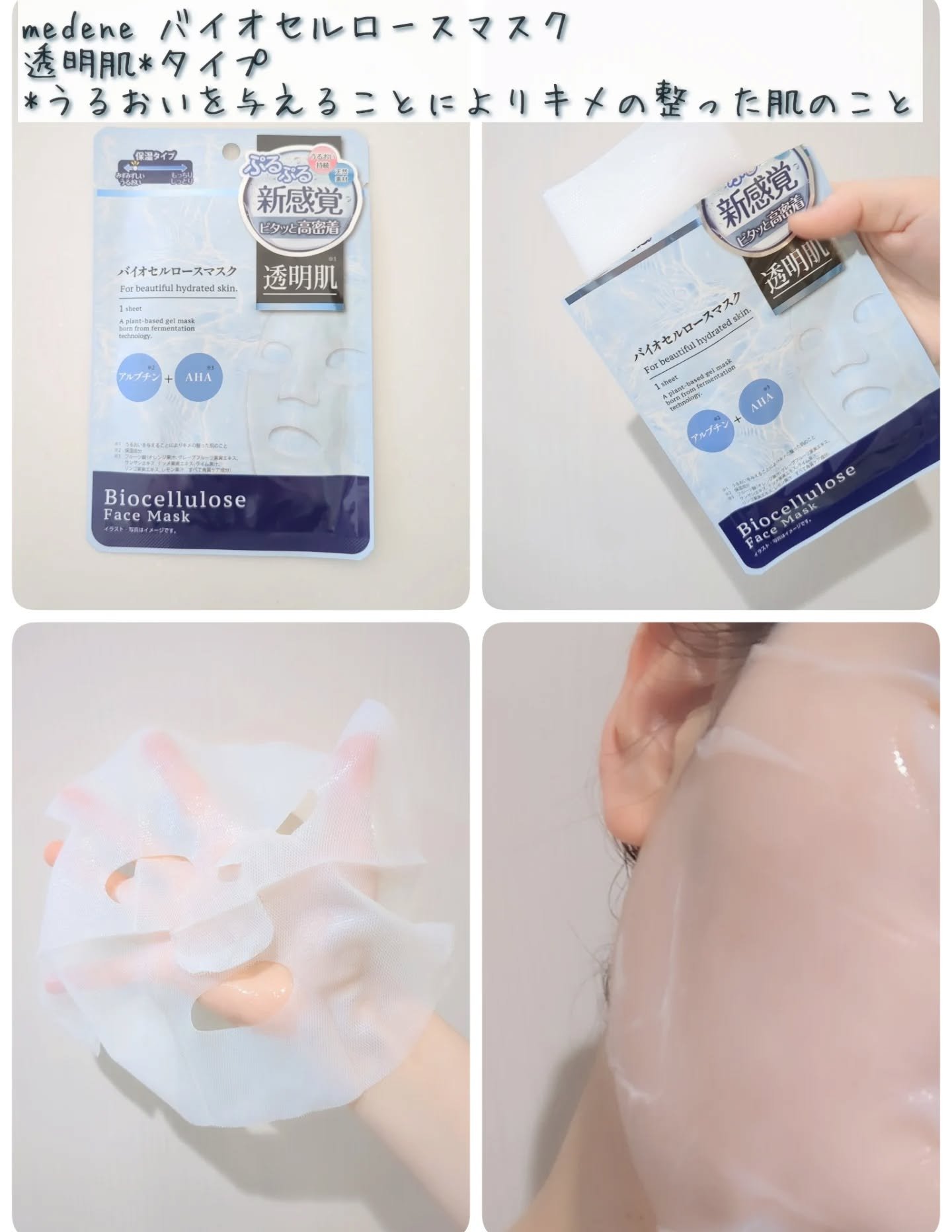 \ぷるんと新感覚マスク/medeneバイオセルロースマスク新感覚のバイオセルロースマスクが肌に密着、美容成分を 角質層のすみずみまで届けてくれるそう😌ナタデココみたいなプルプル感🫧メッシュシートで挟まれているから、片側だけはがして顔につけて...