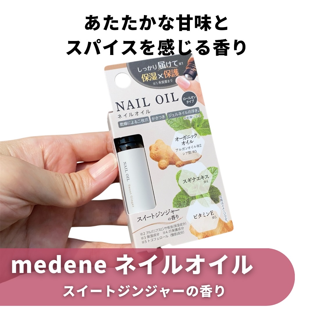 【medeneネイルオイル】トリプルアプローチでしっかり届けて※保湿×保護美爪成分※1が甘皮・爪などにうるおいを与え、乾燥から指先を守るそう。※角質層まで※1アルガンオイル(アルガニアスピノサ核油:保湿成分)、シア脂(保湿成分)、スギナエキス...