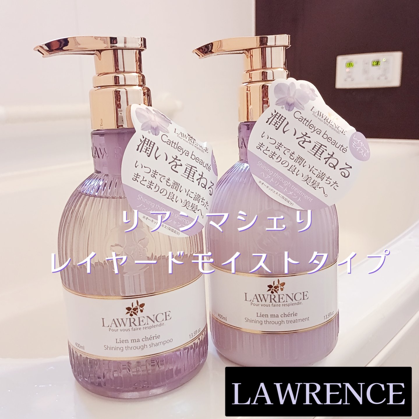 株式会社FRAGRANCY様より提供です。LAWRENCE(ロウレンス)シャイニングスルーシャンプー/トリートメントリアンマシェリ(レイヤードモイストタイプ)リアンマシェリは、ミステリアスな薄紫の蘭の香りをベースに、ゼラニウム、ラベンダー、ロ...