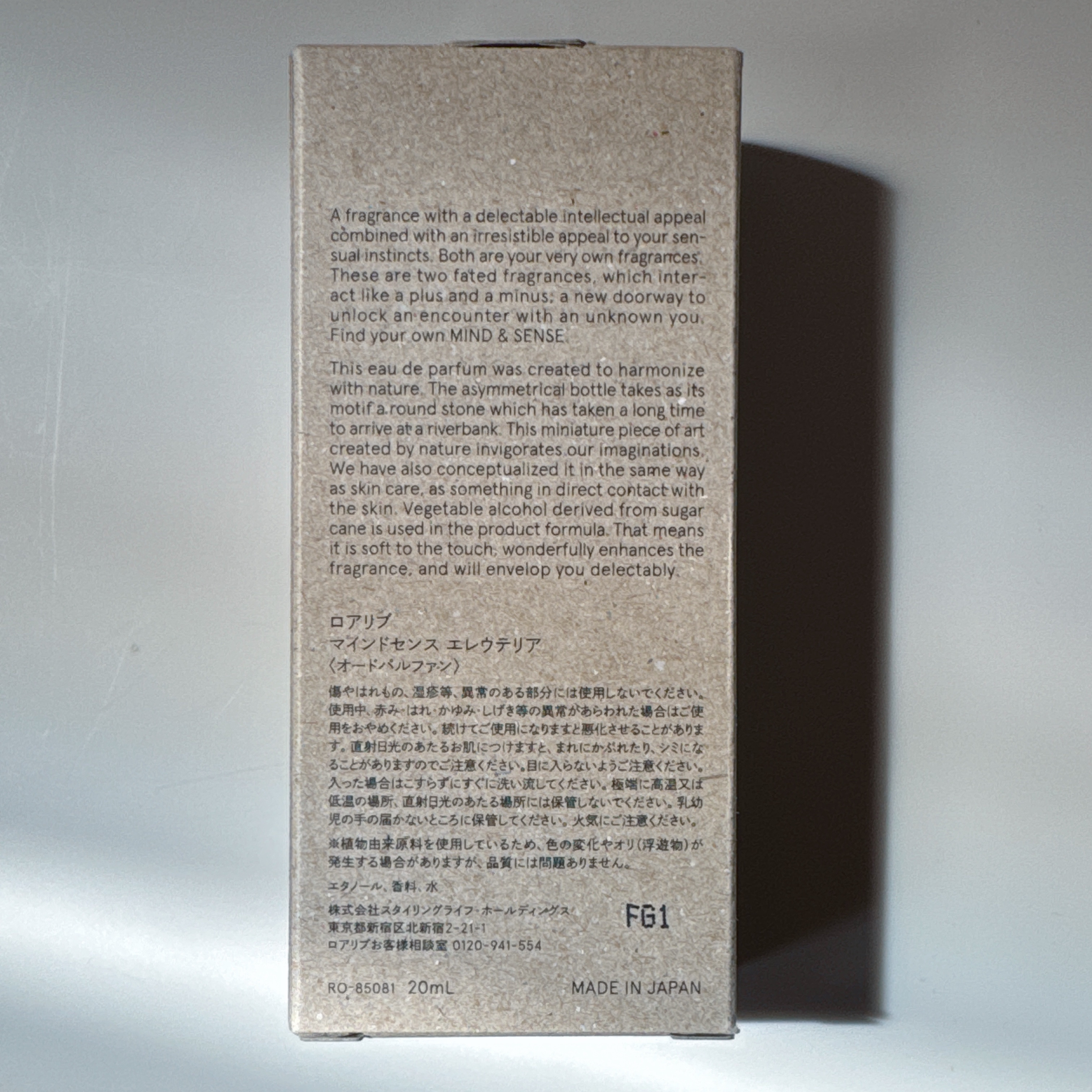 - 限定発売 「本能と理性に作用する香り」マインドセンスから、秋限定の香り「エレウテリア」を発売します。 エレウテリアは心の旅をイメージした瞑想系で、静けさと高貴さを併せ持つ個性的な香りのオードパルファンです。 足首や腰などに付けて軽めに香らせたり、手首やデコルテにつけてしっかりと香らせたりと、シーンやお好みでお楽しみください。 アトマイザーへの移し替えは不要なコンパクトサイズです。 スパイスが小気味よく広がるトップから、徐々にスケール感を高めて独創的な華やかさのあるミドルへ。 全体を支配するのはウードを始めとした豊かなウッディ。 気を落ち着かせる瞑想系の香りです。
