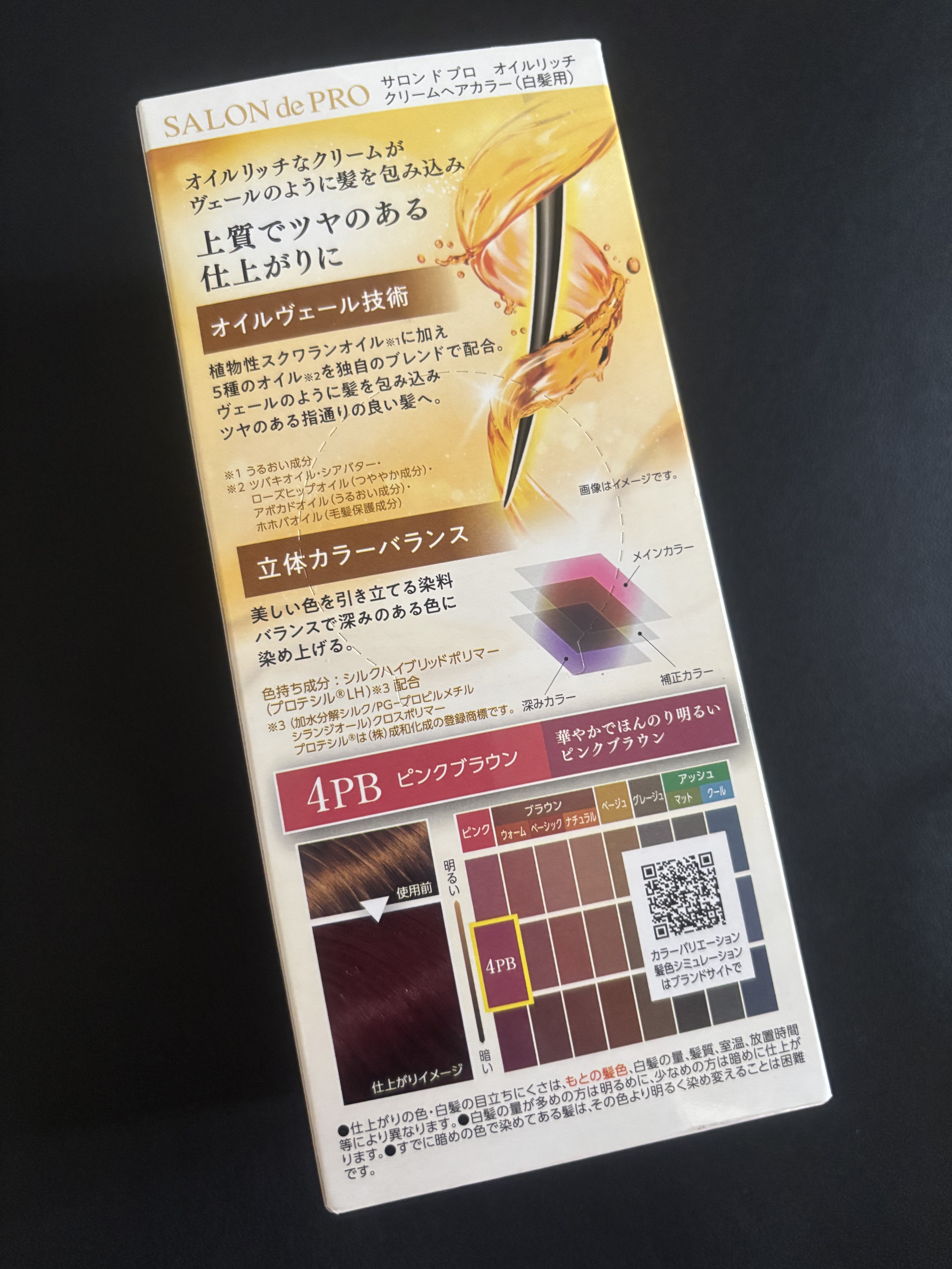 サロンドプロオイルリッチクリームヘアカラーの5BBスタイリッシュブラウン(ベーシックで自然なブラウン)が当たりました。 使いやすかったです。匂いもしませんでした。全体的に前髪と左側が白髪が多く多毛な私でも1つで使い切ることができました。 セルフでもガッチリ染まって実感しました。また、使い続けたいと思います。