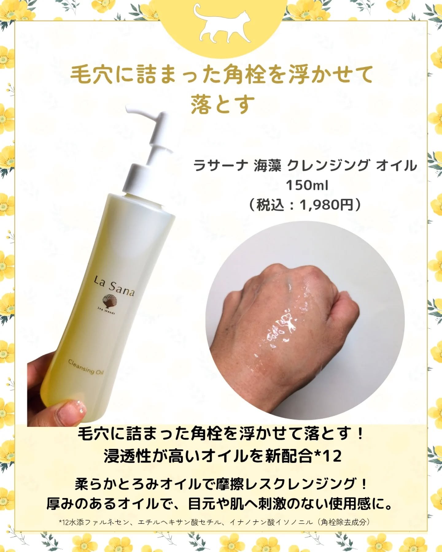 ⌇🎀LaSana(ラサーナ)𓐄𓐄𓐄𓐄𓐄𓐄𓐄𓐄𓐄𓐄𓐄𓐄𓐄𓐄𓐄𓐄𓐄𓐄𓐄𓐄𓐄𓐄𓐄𓐄𓐄𓐄𓐄ヘアケアブランドで有名なラサーナから洗浄力と保湿力に着目し、毛穴汚れとくすみ肌にアプローチするスキンケアアイテムが登場🫧𓂃꙳⋆◻︎ラサーナ海藻クレンジングオイル...