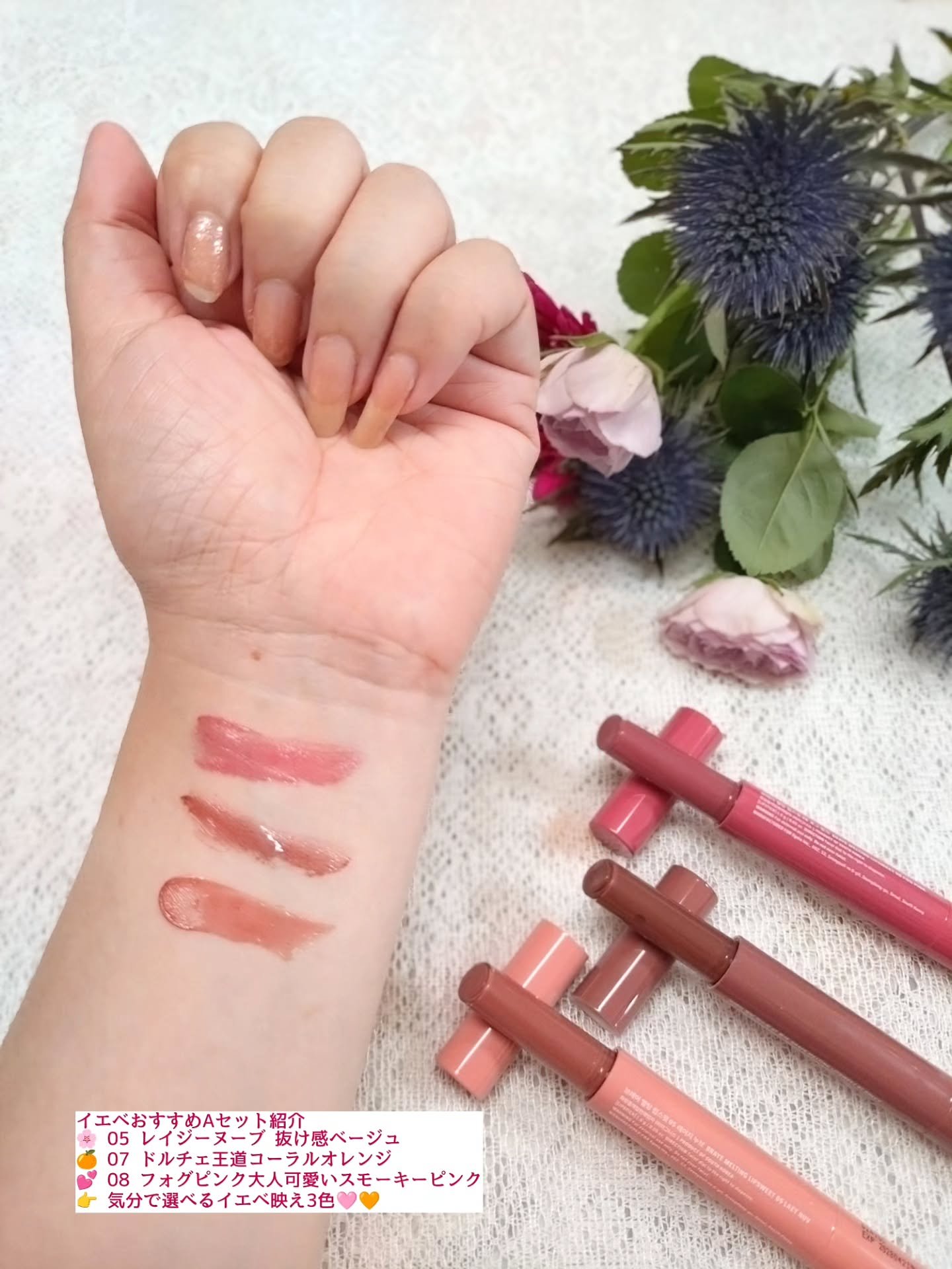 「BRAYE」さまから商品提供していただきました♡\\とろける生ツヤ✨//*BRAYE*メルティングリップスウィート↪︎07DOLCEドルチェ↪︎08FOGPINKフォグピンクとろける生ツヤ感がキレイなリップスティック先端が針めになっていて塗...