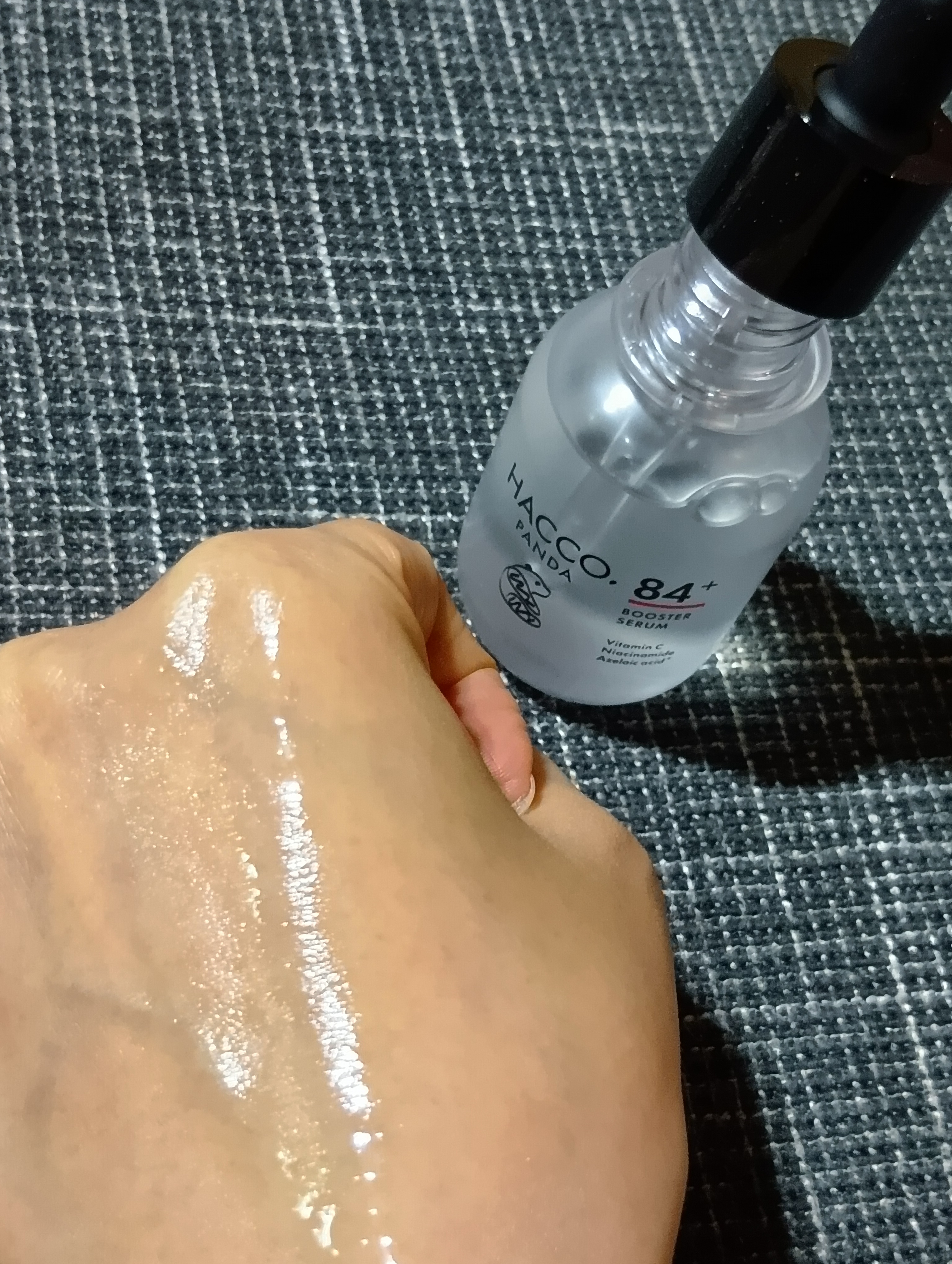 半透明のゆるめのジェルテクスチャー。みずみずしいさらっとした伸びがとても気持ちいい。 美容液は成分が濃いイメージだからとろみやぺたっとしたなじみが多い中、ここまでさっぱりしているなんて驚き。水分と油分のバランスを整え、毛穴も引き締まるから過剰...