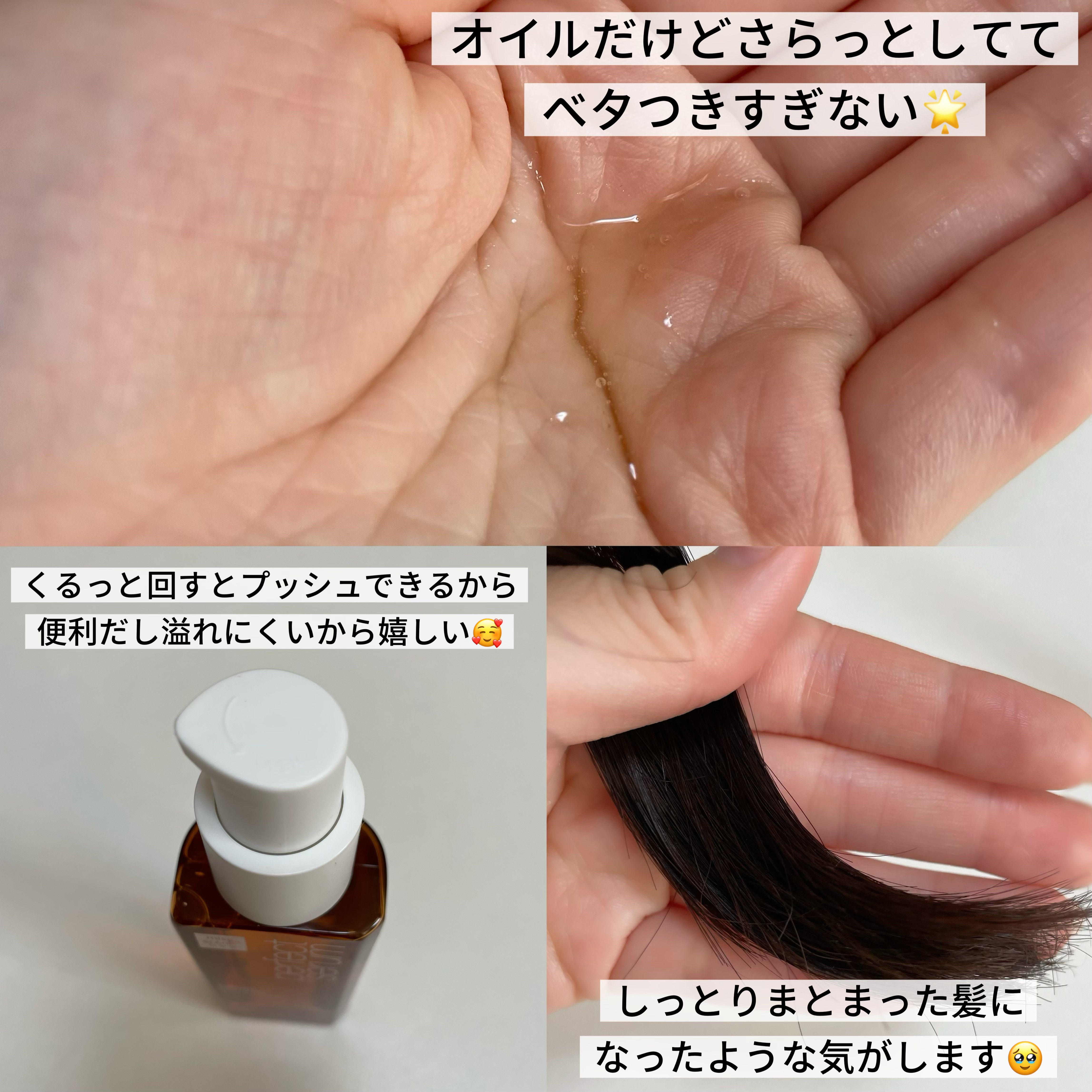 | ドライヤーで乾かすと サラサラしっとりのまとまった髪になって良い感じです💖さすが評価が高いだけあるヘアオイルです | 詳細を見る | ||