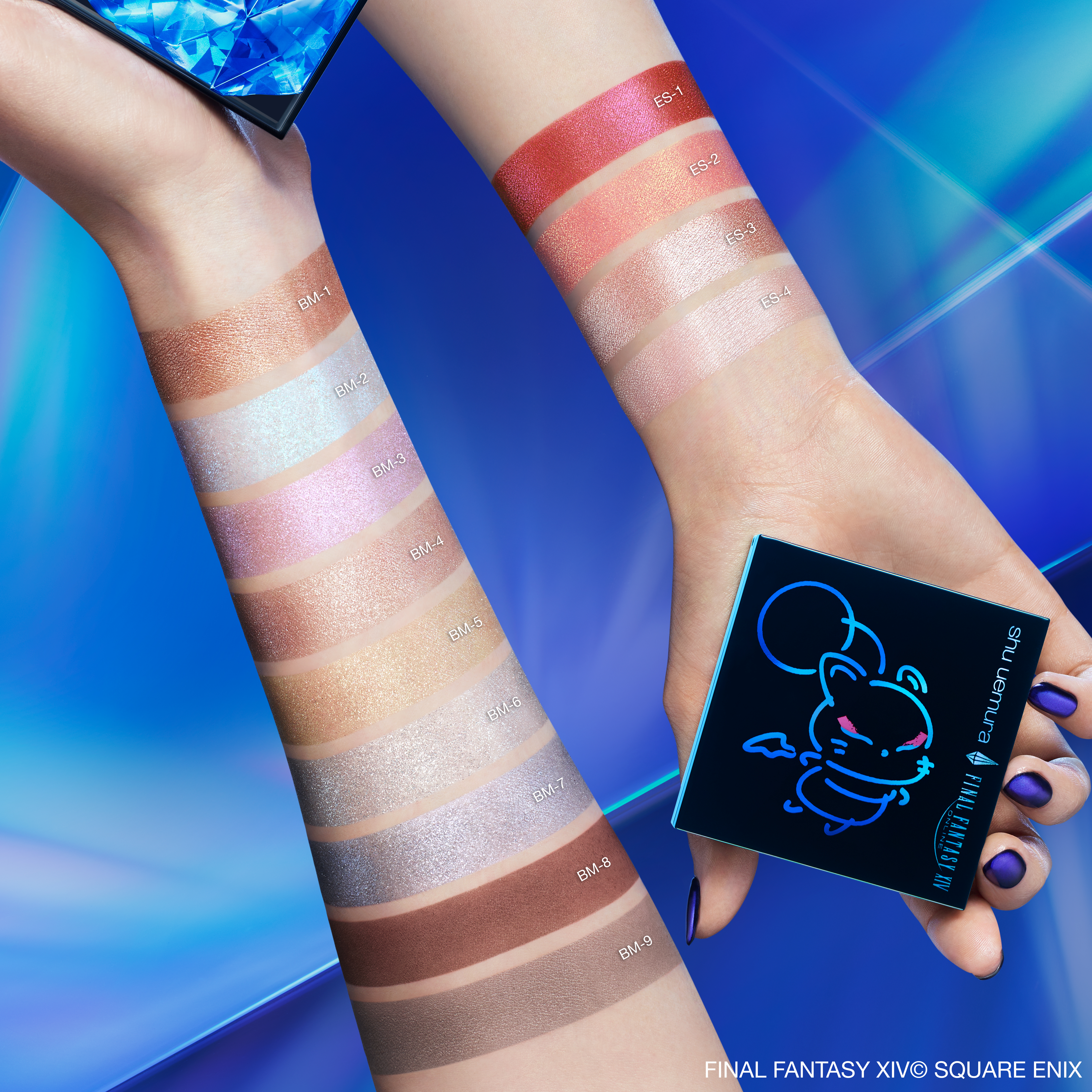 シュウウエムラ×ファイナルファンタジーXIVクポ!クリスタルパレットちょっと待って🥹!グリッターが綺麗で素敵すぎる🥺✨マットカラーにライトバーガンディ、ソフトグレージュが入ってるからとっても使いやすかったです👌ブルーやシルバーのグ...