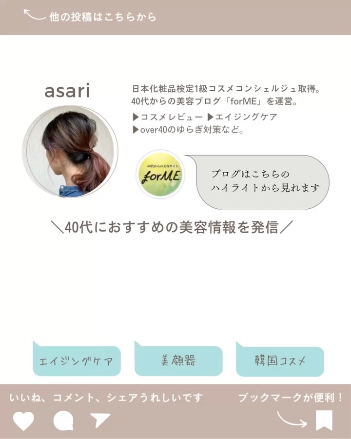 \秋にしたい髪と頭皮のケア方法/ 秋は肌と同じように、髪や頭皮も夏の紫外線や汗によるダメージを受けています。そのうえ空気が乾燥し始めるため、抜け毛・パサつき・かゆみなどの悩みが出やすくなります。 今回こちらのpostでは、秋に行いたい 「髪と頭皮のケア方法」 を伝授したいと思います! 参考になれば幸いです。 *:*============================*:* ブログでは、より詳しくまとめていますので お時間のあるときにでものぞいてください。 *:*============================*:* ————————————— 頭皮の保湿ケア ————————————— 頭皮も肌と同じ「皮膚」なので、乾燥するとフケやかゆみの原因に。ヒアルロン酸やセラミドなどの保湿成分が配合された頭皮用ローションを使うと頭皮を健やかに保てます。 ————————————— 髪の補修と保護 ————————————— 夏の紫外線でダメージを受けた髪は、キューティクルが剥がれて乾燥や枝毛につながります。ドライヤー前に洗い流さないトリートメントやヘアオイルで補修し、熱や乾燥から髪を守りましょう。 ————————————— 食生活で 内側から強い髪へ ————————————— 髪はタンパク質からできているため、魚や大豆、卵などの良質なタンパク質をしっかり摂ることが大切。亜鉛や鉄分も毛根の働きを助ける栄養素なので、バランスの良い食事を心がけましょう。 ✼••┈┈••✼••┈┈••✼••┈┈••✼••┈┈••✼ 秋は、夏の強い日差しで受けたダメージをケアしてあげるいたわり期間。肌や髪をとことんお手入れしてあげることで、 冬の厳しい乾燥に備えてあげましょう。 ブログではより詳しく秋の「頭皮ケア」についてまとめています。 ブログの検索窓に「頭皮ケア」と入れて検索すると、今回のもっと詳しい記事が読めます♪ ぜひ、ブログにも来てね! *:*============================*:* asari*老化に抵抗しつづける40代 他の投稿はこちらから … @asari7019 ▶︎40代からの美容ブログ「forME」運営 https://daizumayuge.com/for-me/ (ハイライトにURL載せてます!) ▶︎美容まめ知識はストーリーorリールで! *:*============================*:* #秋 #秋のヘアケア #ヘアケア #頭皮ケア #美しい髪 #エイジングケア #美容ブログ #forME