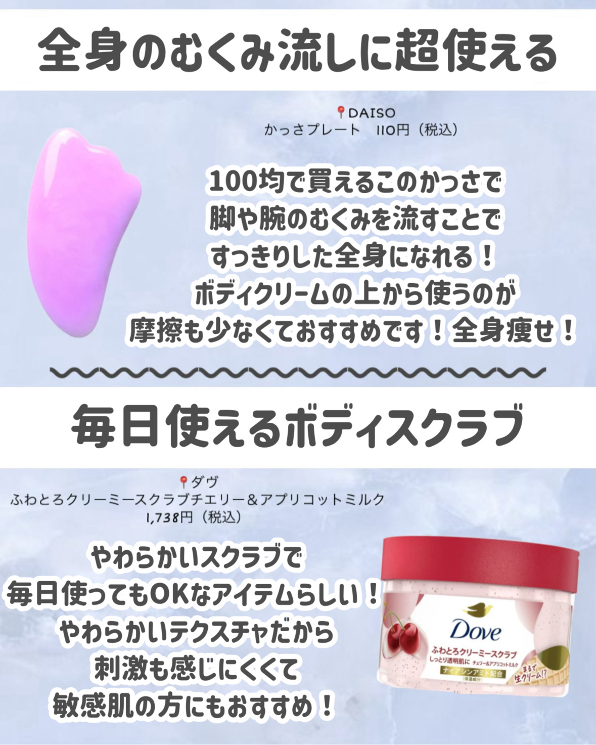 ダヴのボディスクラブ使ってます ✨かっさずっと気になってるから100均だし買ってみようかな…💨