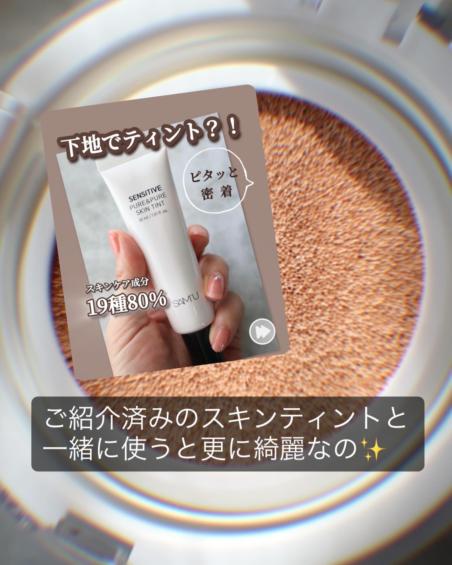 sam's/SENSITIVEPURE&PURECUSHIONサミュから出た新作クッションファンデーション🤍1度のタッチで、まるで素肌のようなツヤ肌へ。エッセンス成分を53%配合し、スキンケアしているような心地よさとカバー力を両立。ガラス玉の...