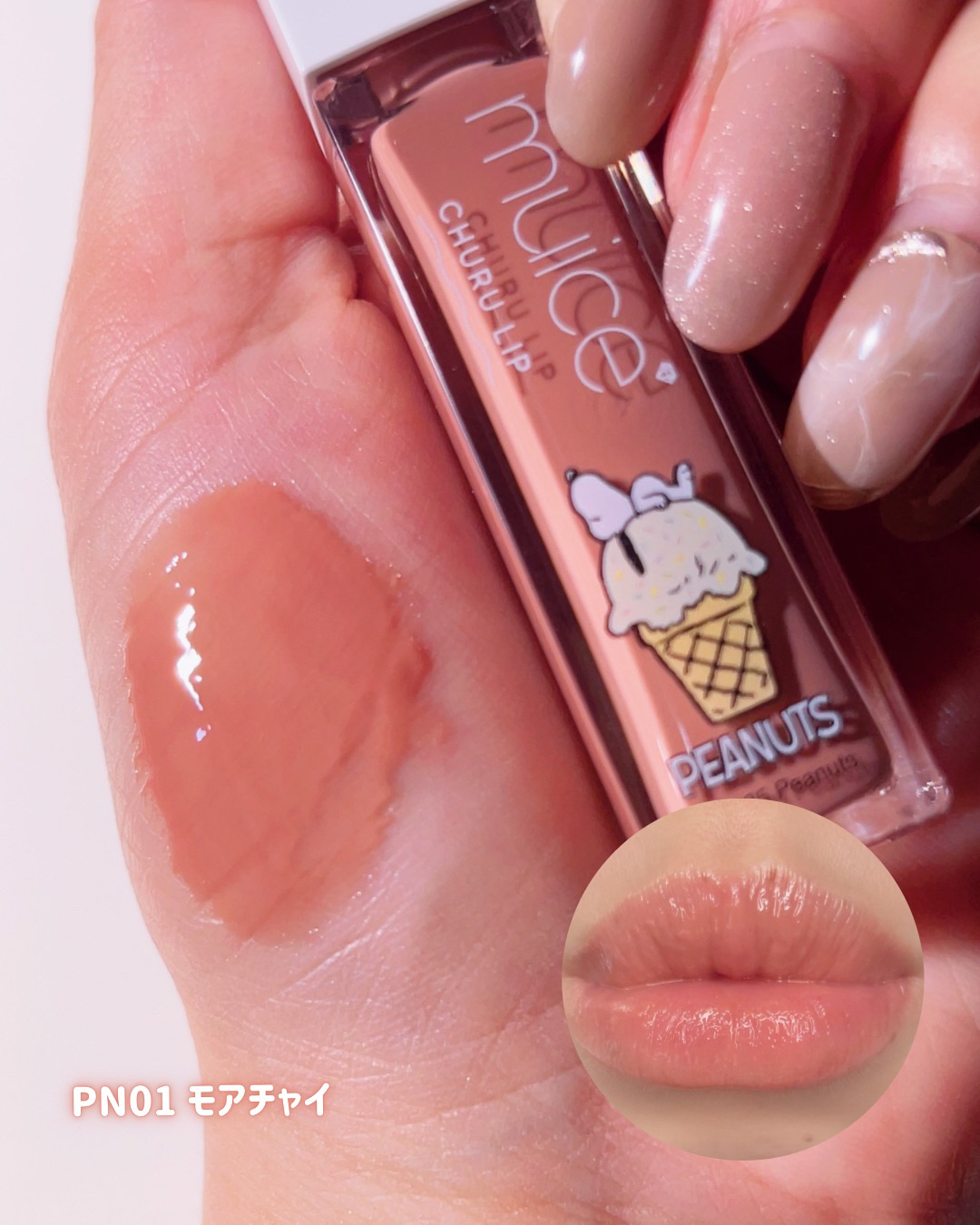 \かわいいピーナッツコラボ/【muice】うるみハイライターPN01ベビーサイダーぽわんチークPN01コットンメロリーナPN02ベビメロピンクちゅるリップランパーPN01モアチャイ発売以来SNSでも大注目のmuice×ピーナッツコラボのアイテ...