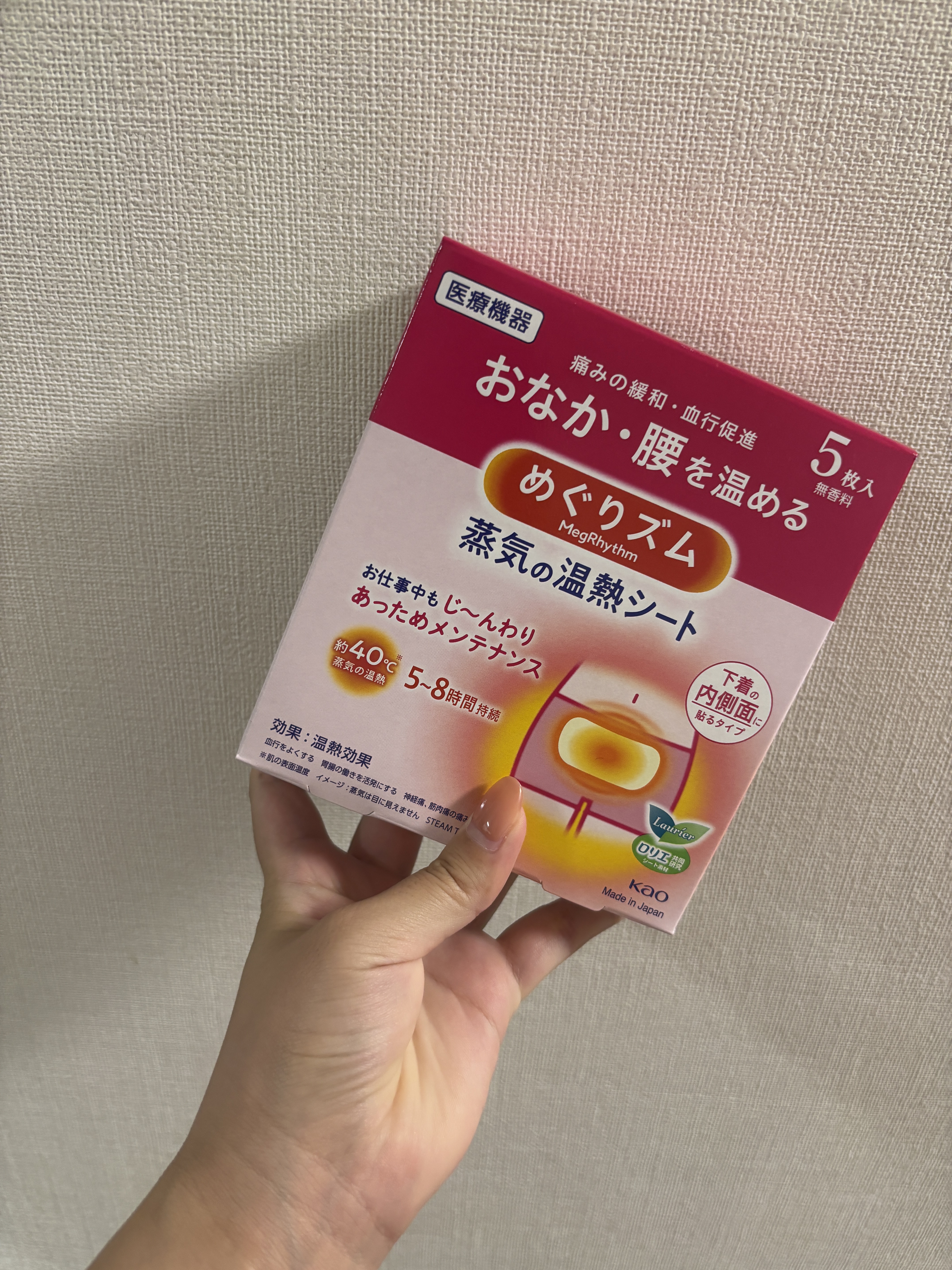 - 無香タイプ 下着の内側面に貼って、おなかや腰を温める医療機器。 心地よい蒸気の温熱が、おなかや腰を深く温め、血行を促進します。 約40℃*蒸気の温熱が5~8時間持続