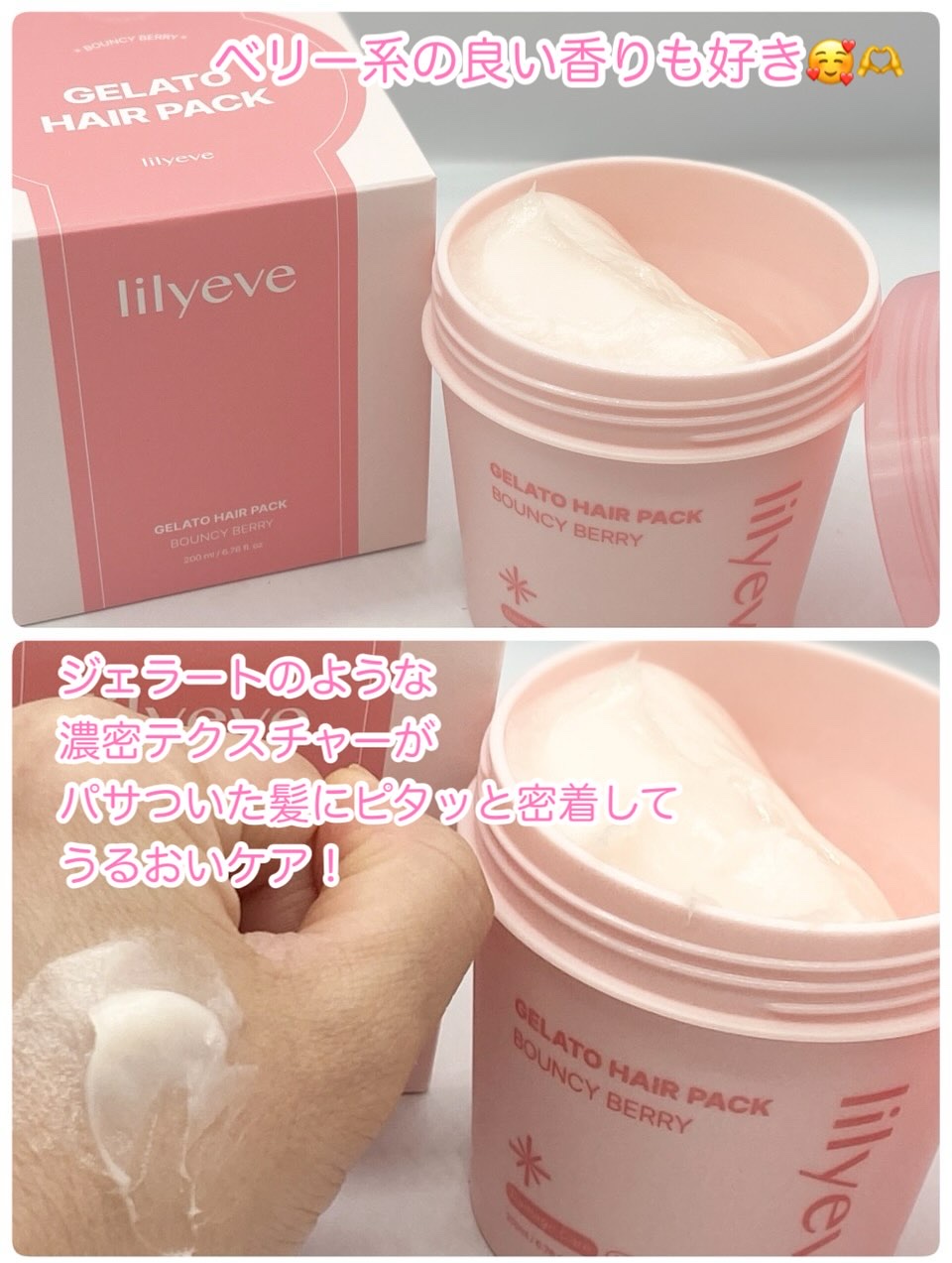 ☑︎リリーイブリペアターンジェラートヘアパックバウンシーベリー200mlお試ししました🌸リリーイブの新作ヘアパック💓まるでジェラートのような濃密なテクスチャー👏もったりとしていて髪にしっかり密着してくれる🙌ベリーのいい香りでしっとりとした使用...