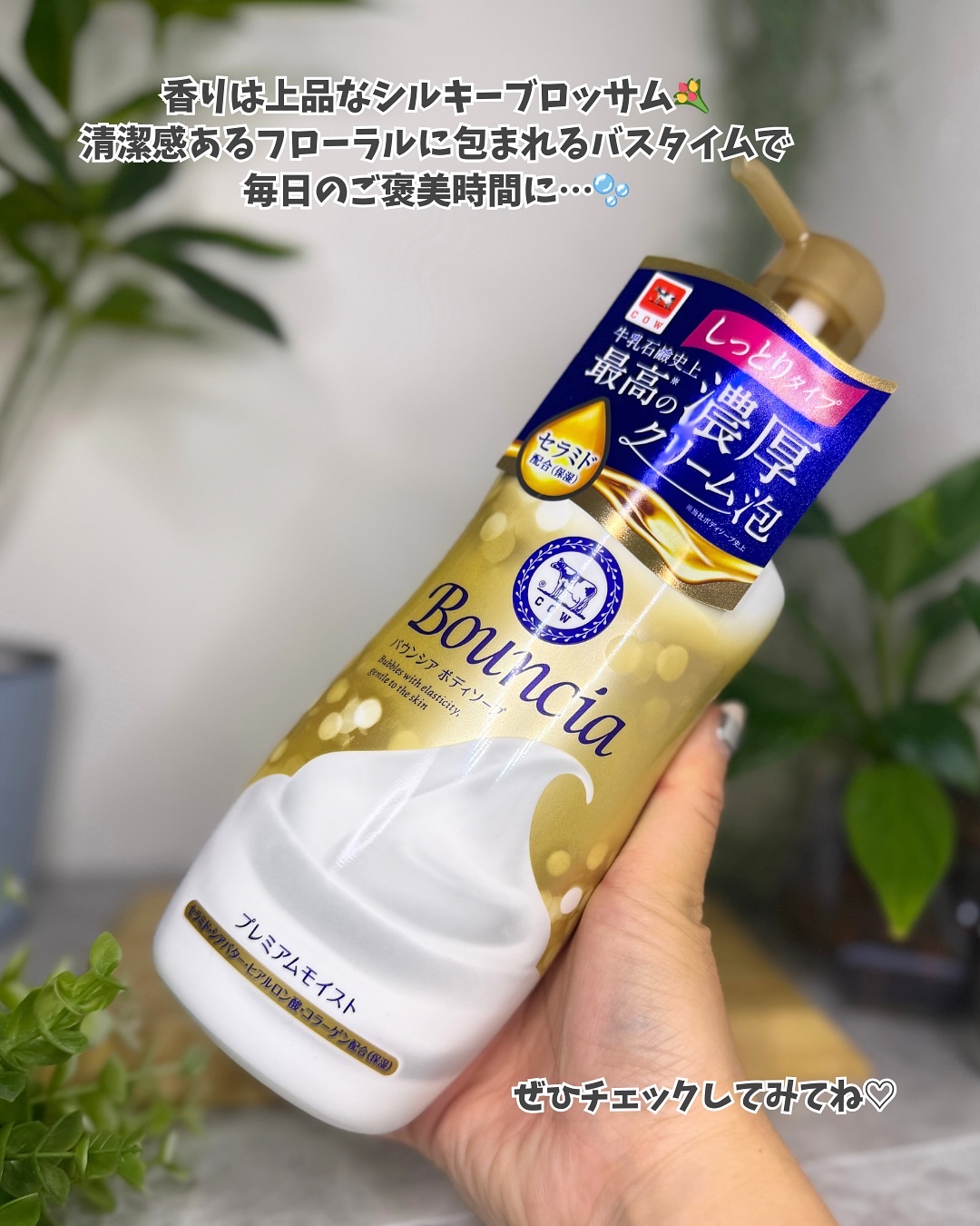 牛乳石鹸さまからいただきました🐄⸒⸒〖バウンシアボディソーププレミアムモイスト〗「バウンドするような泡」という意味がこめられた、牛乳石鹸のボディソープブランド“バウンシア”🤍1PUSHでしっかりと泡立ち、もっちり濃厚クリーム泡で摩擦レスで肌を...