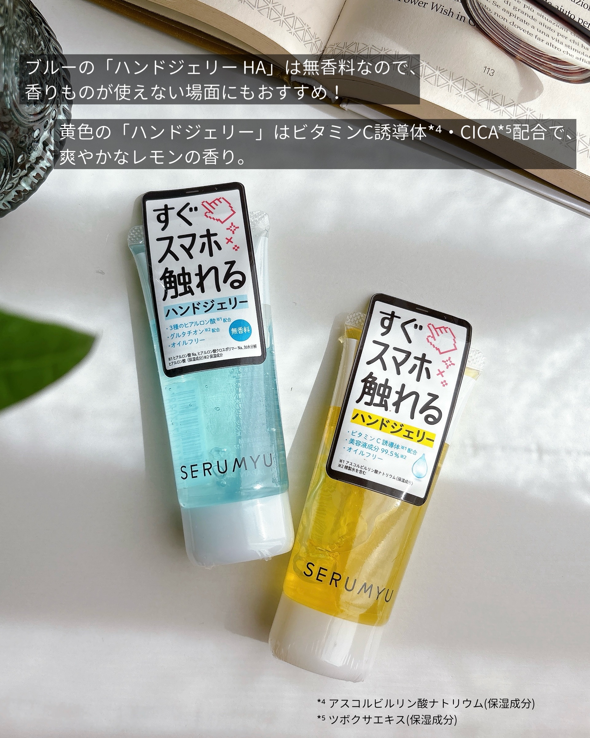 軽い使用感でべたつかないからストレスフリー!セラミュハンドジェリーHAうるおうのに、べたつかない使用感ハンドジェリー・オイルフリーで肌の上に油膜が作られないため、水分がスーッと浸透(角質層まで)。HAは無香料だから、香りものが使えない場面にも...