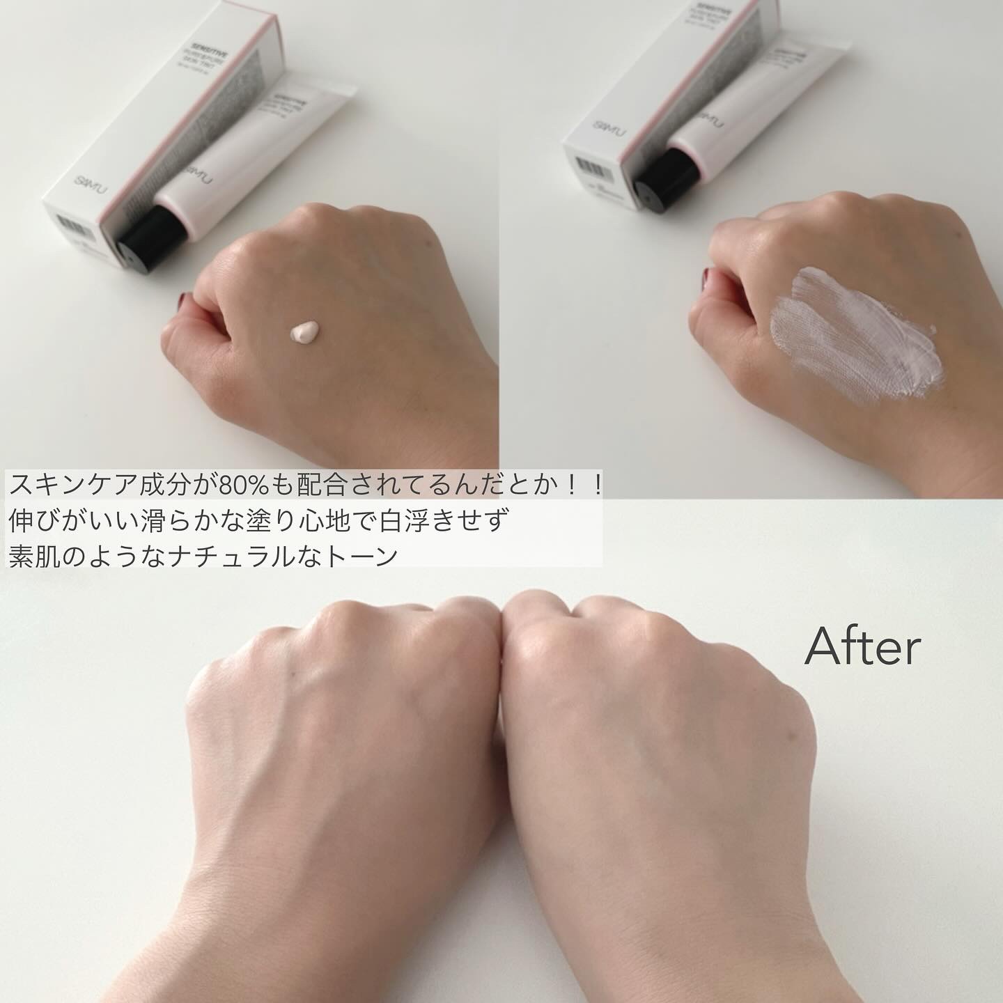 SAM'U♡スキンケア成分80%配合の下地ピュアアンドピュアスキンティントピンクベージュテクスチャーは柔らかく、伸びが良いまた、白浮きせず、ナチュラルなトーンの肌にティントを塗った後に、クッションを重ねると、仕上がりがよりキレイになります✨#...