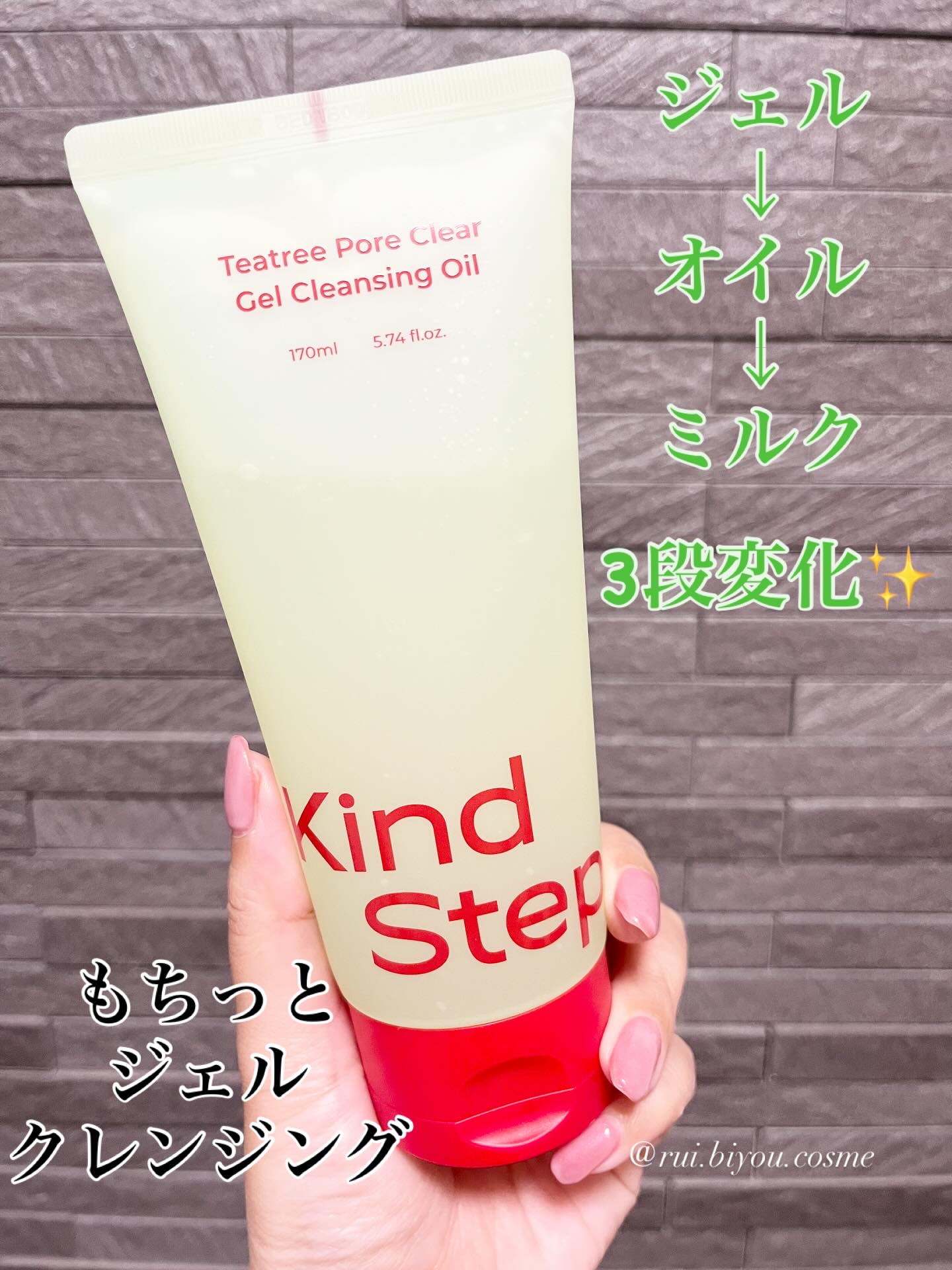 KindStep【ティーツリージェルクレンジングオイル】しっとりと絡みつく新感覚の吸着クレンジングジェルオイル、ティーツリージェルクレンジングオイルを使ってみました。LHA、BHA配合で、もちっとしたゼリーテクスチャーが、毛穴の奥の汚れまでし...