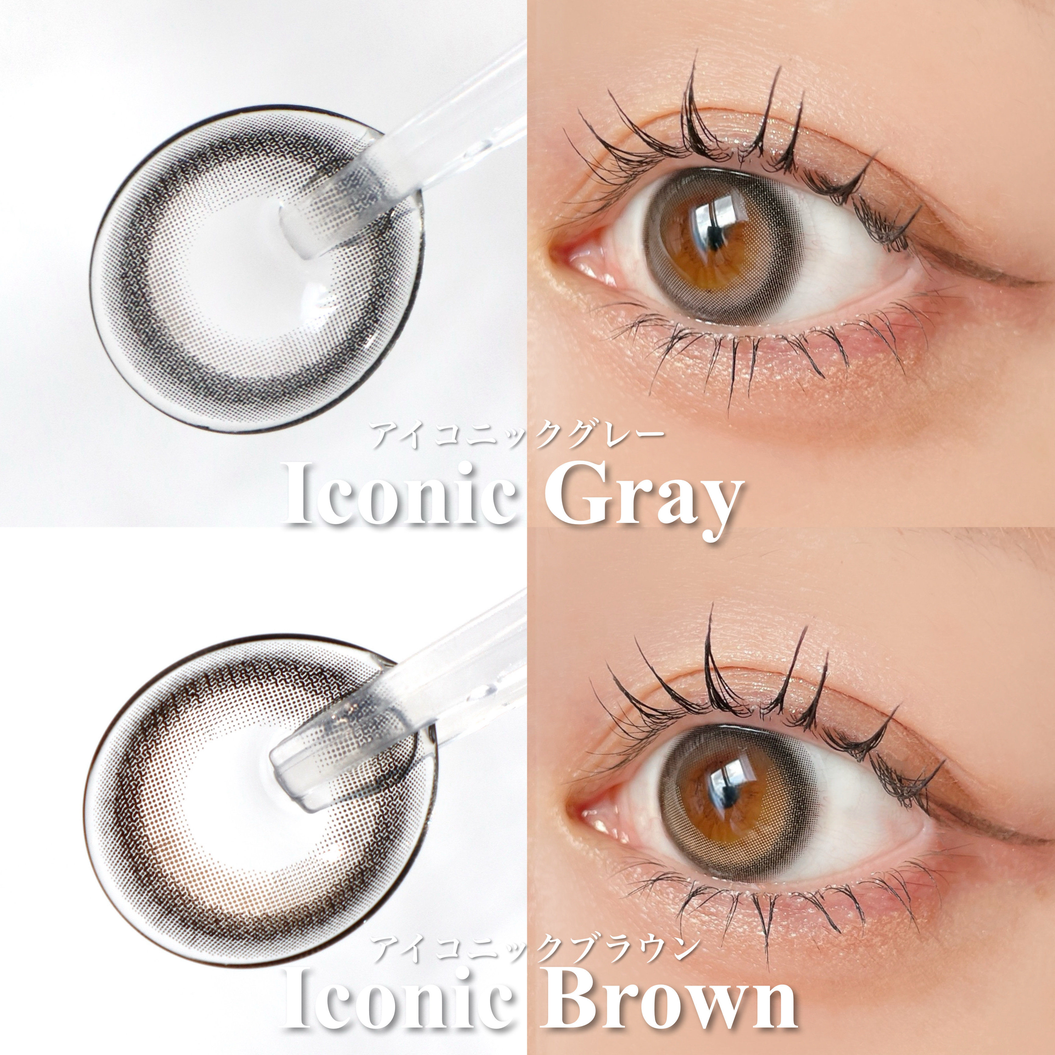 - ガラス玉に閉じ込めた無数のきらめきが、あなたの瞳で自信に変わる。 回っても、ずれても、輝きが続く”ガラス玉レンズ”。 <アイコニックグレー > 水面に揺れる光のようなきらめきで印象的な瞳を叶えます。 瞳の輪郭を優しく縁取る太フチに、象徴的な半月ハイライトが瞳に上品な立体感を与えます。 <アイコニックブラウン > 水面に揺れる光のようなきらめきで印象的な瞳を叶えます。 瞳の輪郭を優しく縁取る太フチに、象徴的な半月ハイライトが瞳に上品な立体感を与えます。 <スターフレアグレー > 降り注ぐ星屑のようなハイライトデザインが、ドラマティックな輝きを与えます。 視線を奪うくっきりとした細フチに、繊細に重なり合うハイライトが主役級の輝きをプラスします。 <スターフレアベージュ > 降り注ぐ星屑のようなハイライトデザインが、ドラマティックな輝きを与えます。 視線を奪うくっきりとした細フチに、繊細に重なり合うハイライトが主役級の輝きをプラスします。 <デイグローグレー> 光をふわりと滲ませるグローカラーが、瞳にヘルシーな艶を仕込みます。 ナチュラルに滲むようなぼかしフチでくりっとした立体感を演出し、内側のグロウカラーが、瞳に光沢感をプラスします。 <デイグローブラウン > 光をふわりと滲ませるグローカラーが、瞳にヘルシーな艶を仕込みます。 ナチュラルに滲むようなぼかしフチでくりっとした立体感を演出し、内側のグロウカラーが、瞳に光沢感をプラスします。 カラーコンタクトレンズの不適正使用による眼障害の危険性等などがあります。 ●コンタクトレンズは高度管理医療機器です。不十分な洗浄・消毒など不適切なケアや、長時間・交換期間を超えた装用により、アレルギー性結膜炎、角膜感染症、角膜潰瘍等の重篤な眼障害が発生する危険性があります ●ご使用前に取扱説明書を確認してください 使用上の留意事項 ●眼科医院等を受診してからお求めください ●眼に異常を感じたら直ちにレンズ使用を中止し、お近くの眼科等で診察を受けてください ●医師の指示にしたがってご使用ください ●コンタクトレンズを装用する場合、自覚症状がなくても、眼科医院等での定期検査を受けてください ●レンズに不具合がある場合は使用しないでください